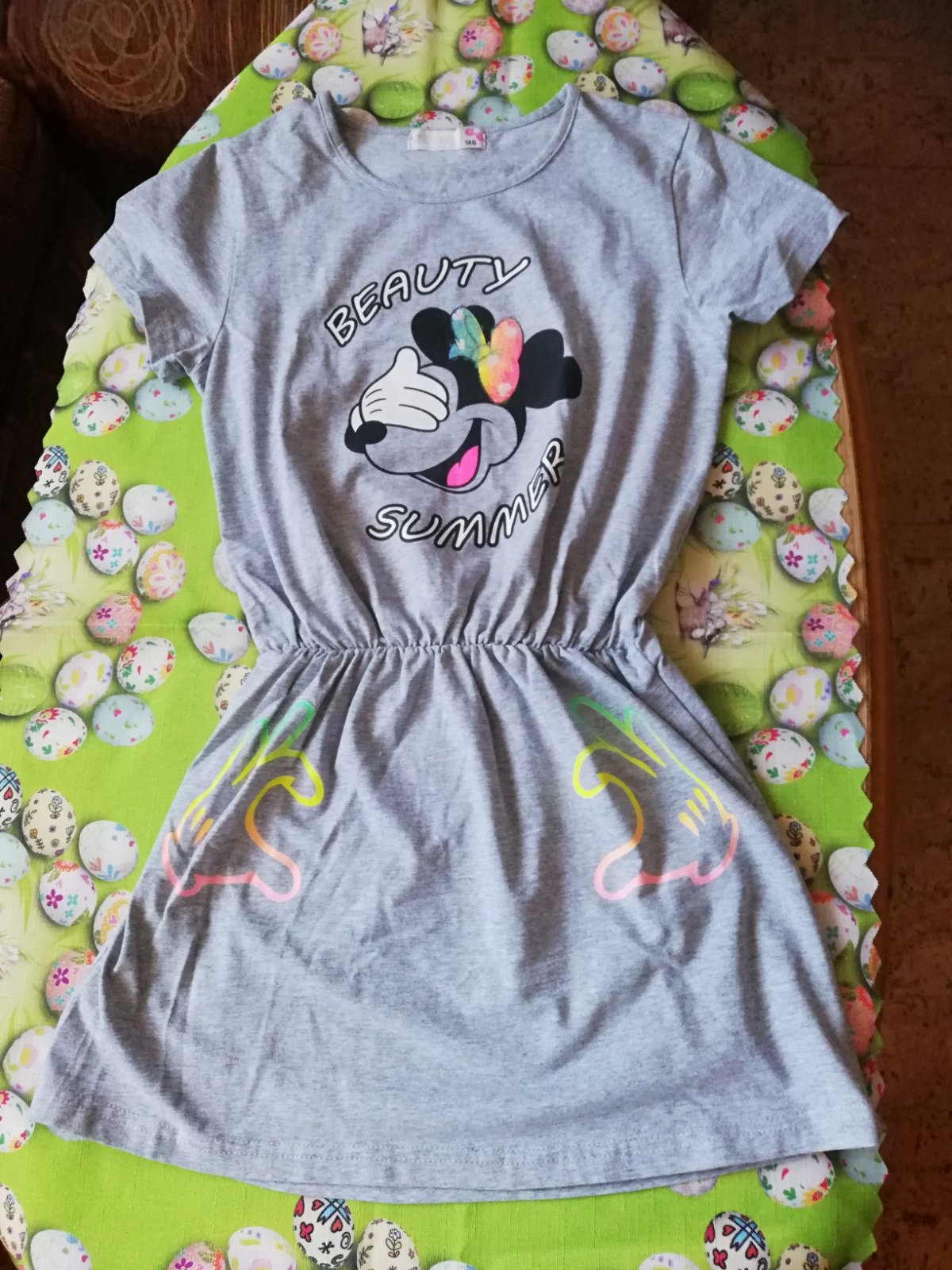 Prodám hezké dívčí letní šaty ve velikosti 146. V pase jsou nabírané na gumu.