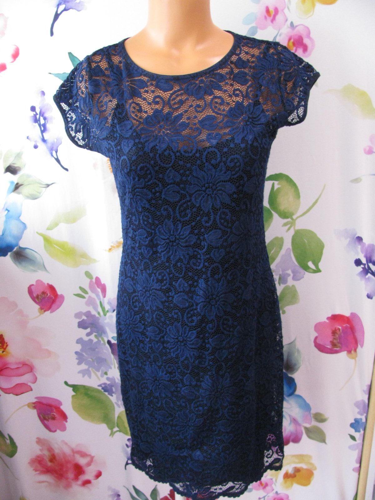 Luxusní krásné elastické tmavě modré krajkové šaty, pod krajkovými šatami jsou modré elastické šaty na ramínka - viz fota, - komplet. Top stav bez vady, málo nošené, velmi šetřené. 95% polyester, 5% elastan. PC vyšší. Nošené jen na jednu párty.