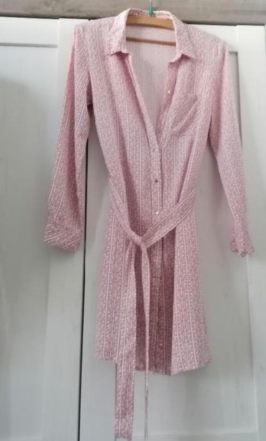 Pěkné košilové šatky, příjemný materiál.....Zapínání na drobné knoflíčky. Ty jsou i na koncích rukávů. Na předním horním díle je našitá kapsička. Šaty jsou v perfektním stavu. Míry : délka 93 cm, pas 2 x 44 cm, průramky 2 x 45 cm s délka rukávů od krku je 71 cm. Materiál : 100 % viskoza. Poštovné - balíkovna 85 Kč nebo zásilkovna za 90 Kč.