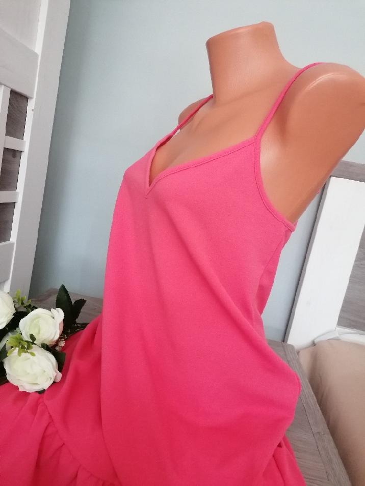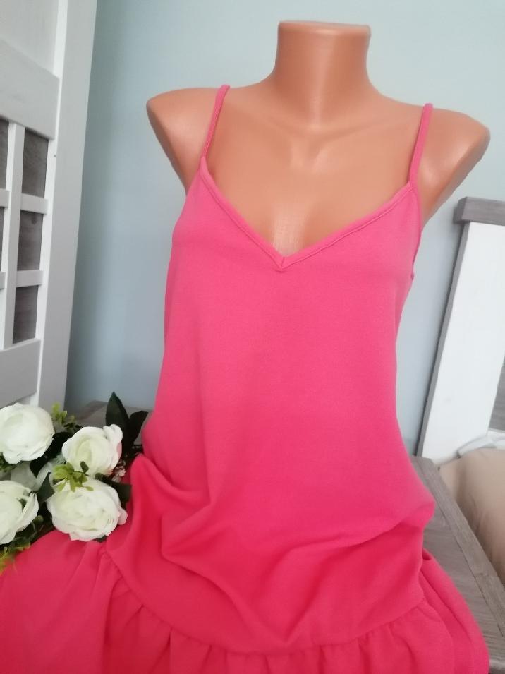 Pěkné letní šaty s volánem na ramínka. Ramínka jsou posuvná...Šaty jsou v perfektním stavu. Šaty jsou áčkového volnějšího střihu. Míry : délka 89 cm, pas 2 x 49 cm, průramky 2 x 44 cm. Materiál: 95 % polyesteer a 5 % elastan. Poštovné - balíkovna 75 Kč nebo Zásilkovna za 90 Kč.