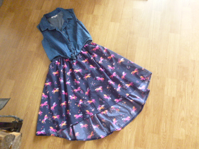 krásné, nošené málo, délka je 73 cm, vzadu 80 cm, pas 2x31-41 cm, průramky 2x40 cm, psaná vel. 11 l zn.Bluezoo