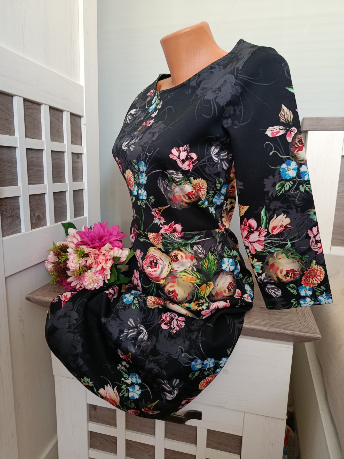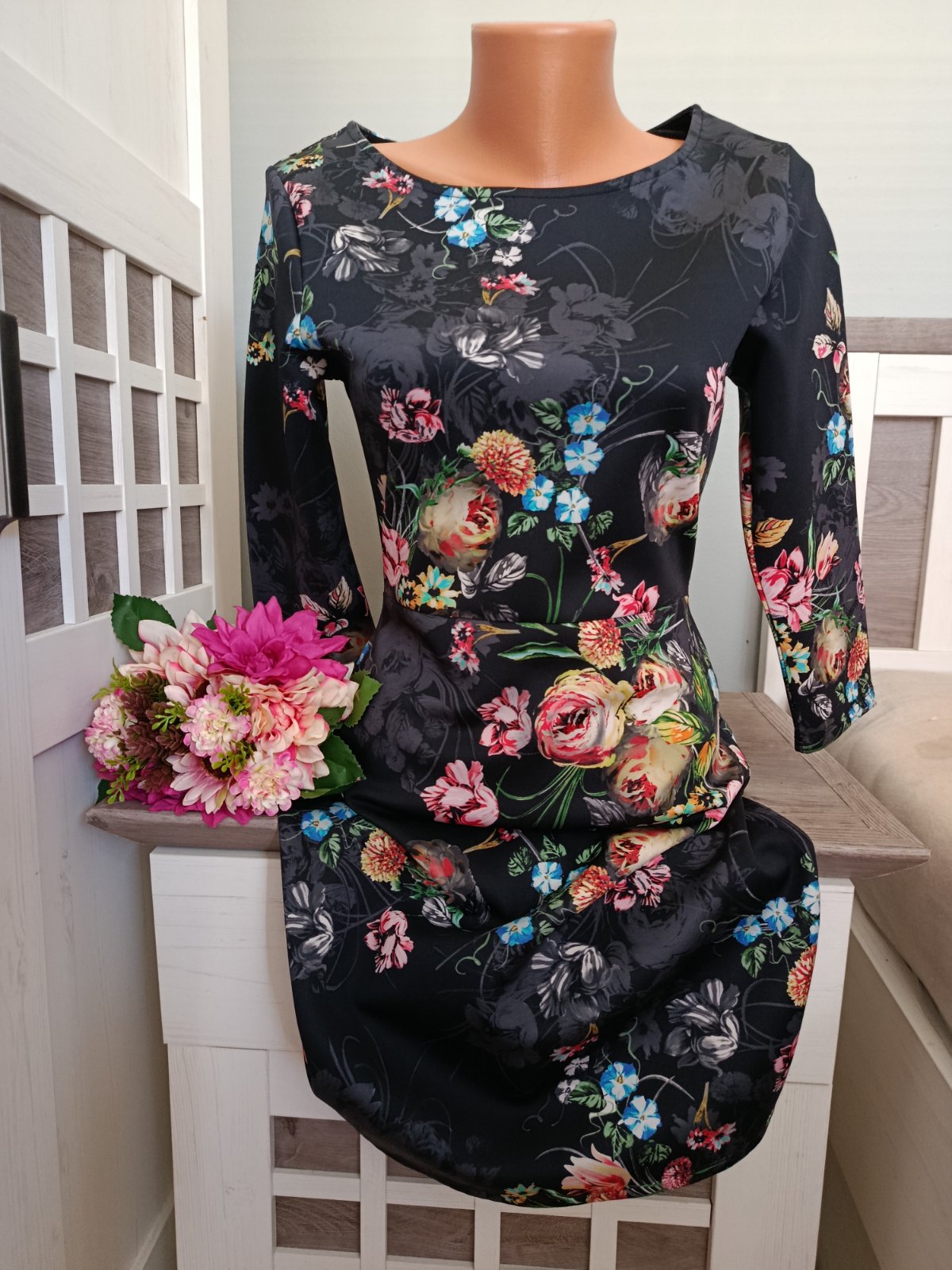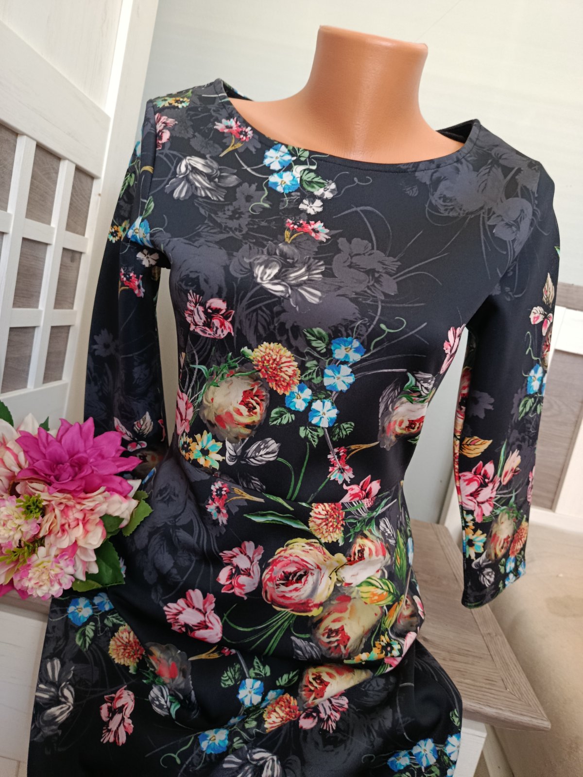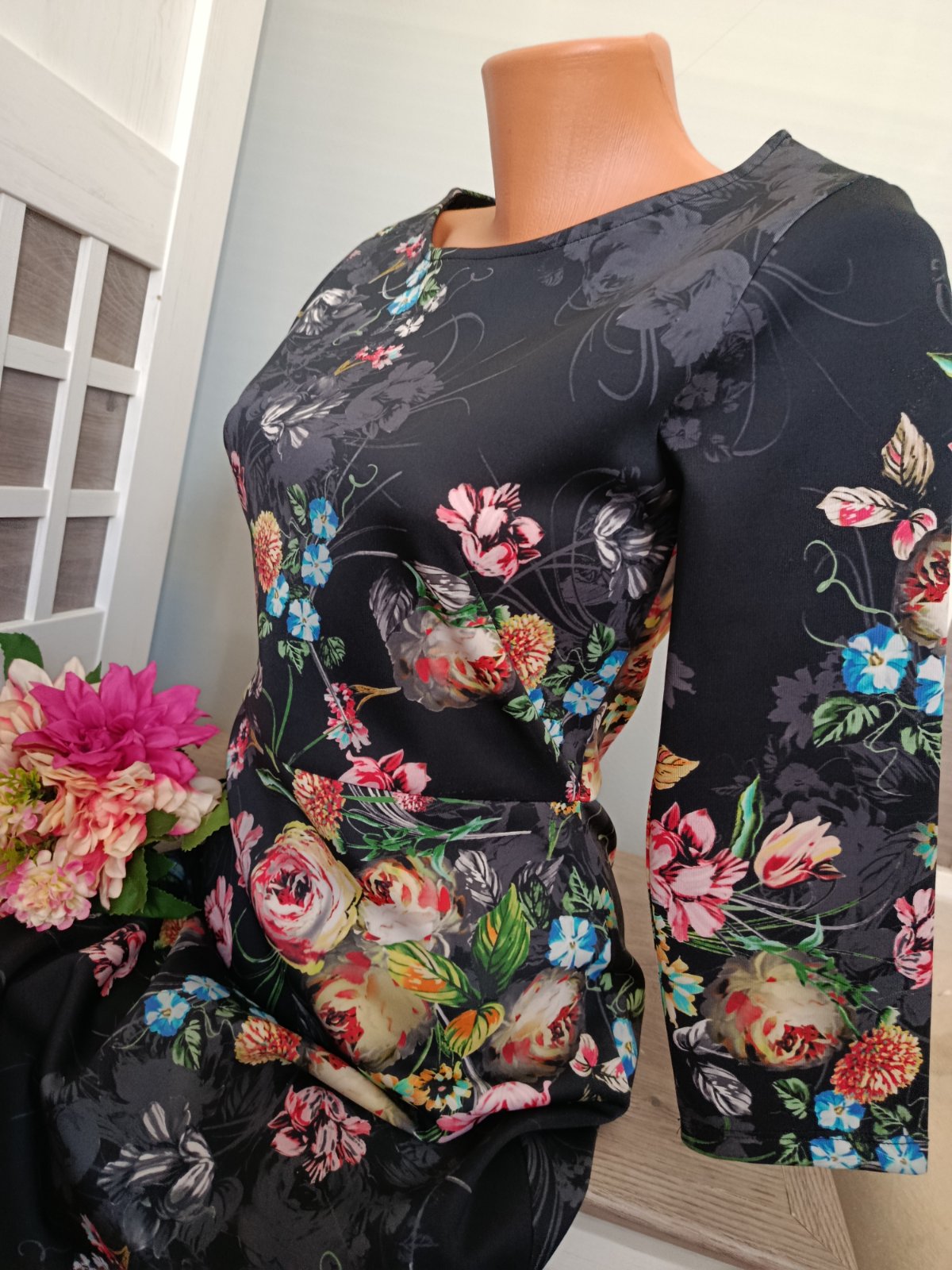 Krásné květinové šaty. Pevnější materiál. Nádherný potisk :-) Šaty jsou v perfektním stavu, bez žmolků...Pevnější a silnější materiál, který pruží ....Vzadu jsou na zip..Velikost jsem ustřihla. Sednou na S i M. Materiál: polyester a elastan. Míry : délka 91 cm, pas 2 x 36 cm - 2 x 40 cm, průramky 2 x 43 cm - 2 x 45 cm, délka rukávu od krku je 51 cm. Poštovné - balíkovna za 85 Kč nebo zásilkovnou za 90 Kč.