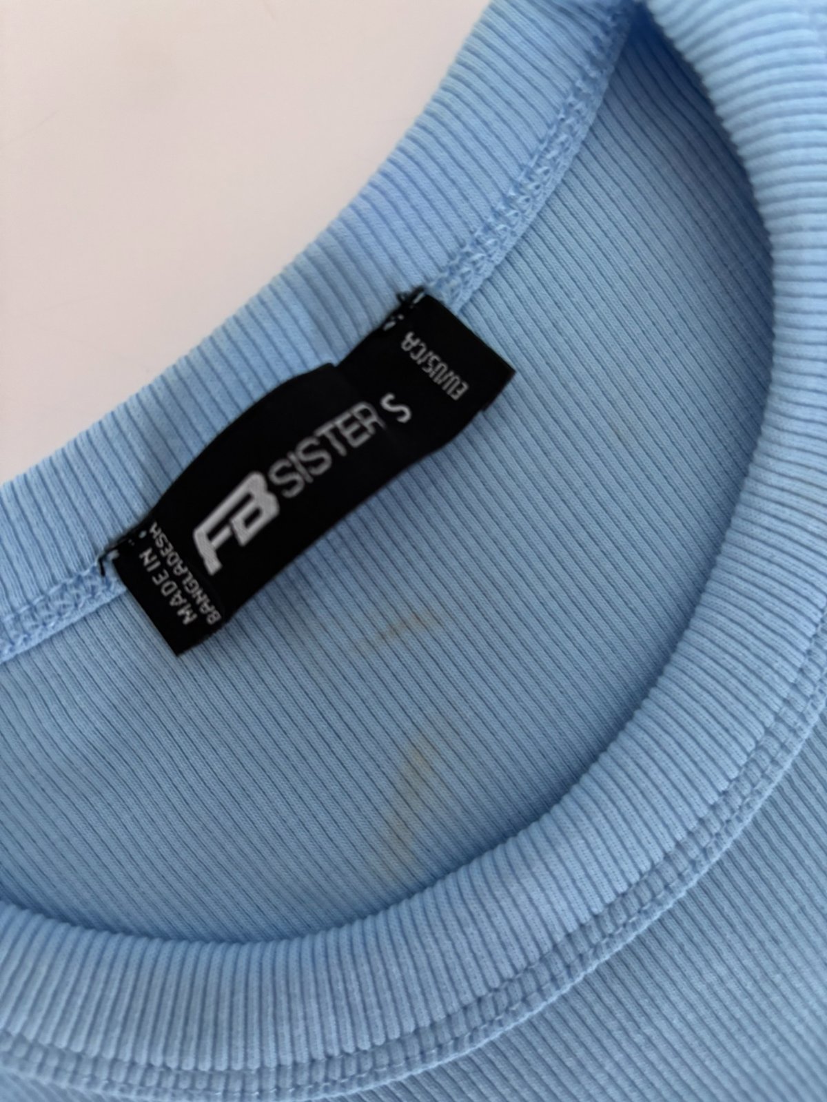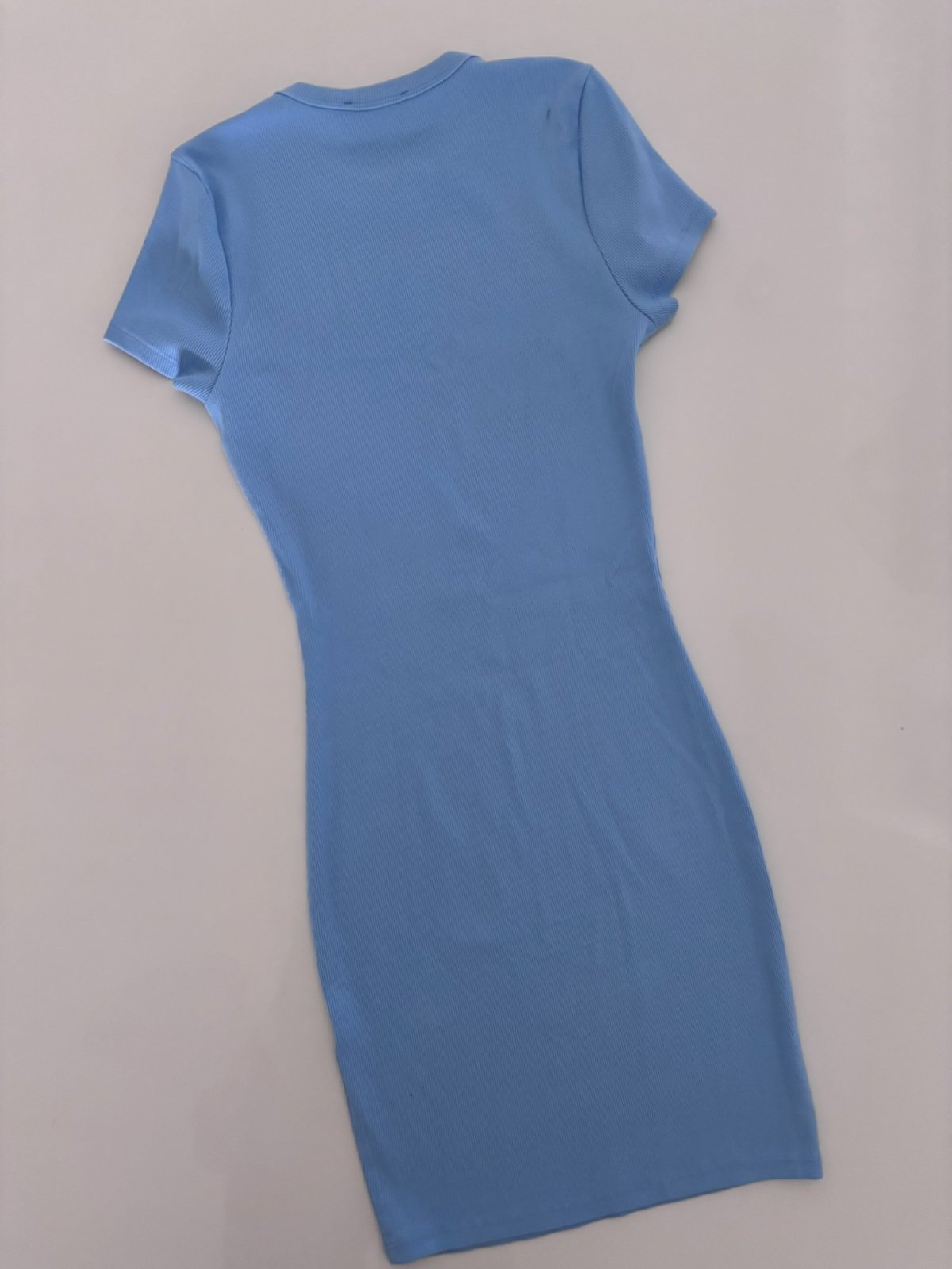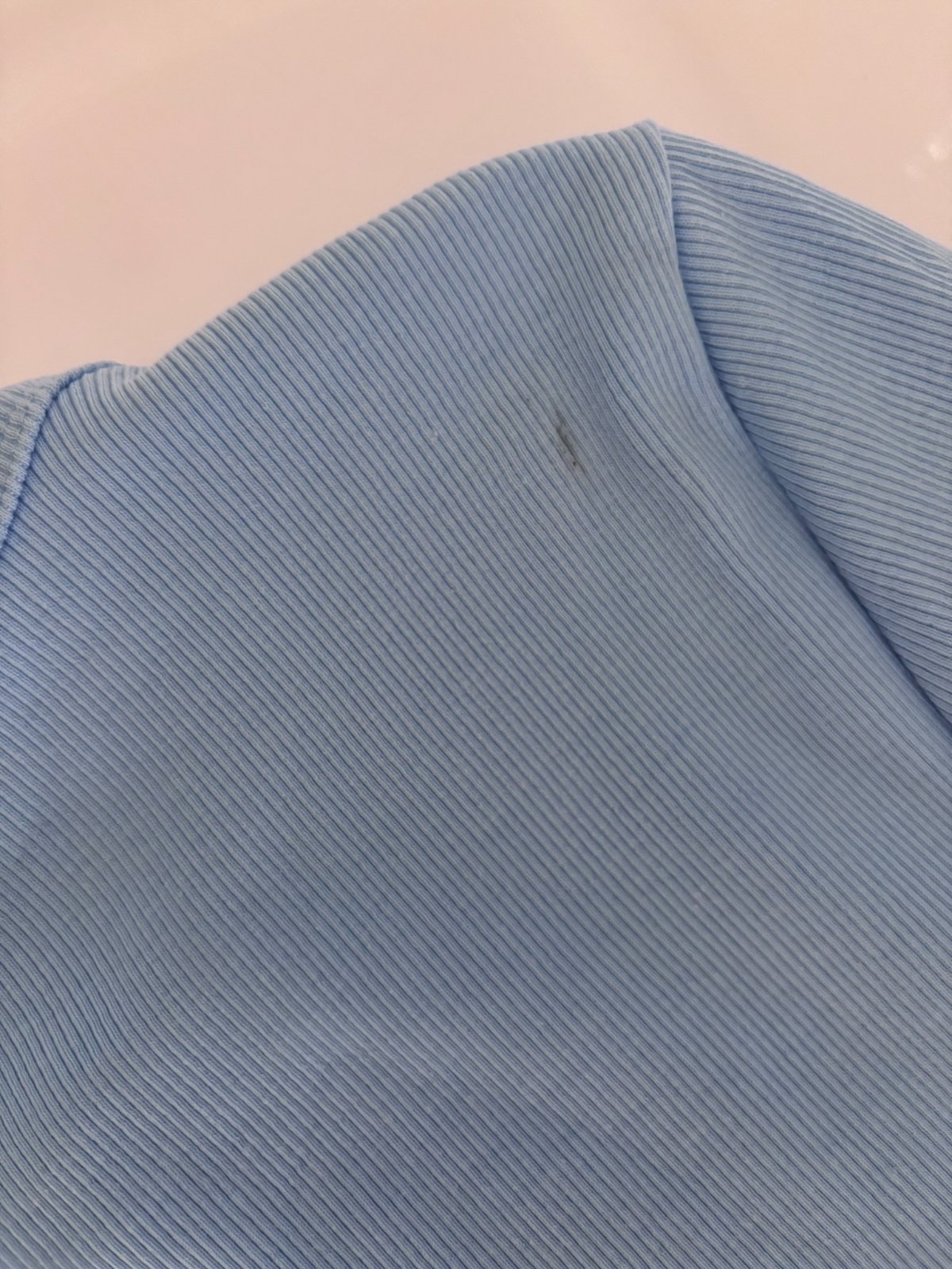 Modré - nošené týden, vzadu na rameni 5 mm šmouha (lehce přehlédnutá).