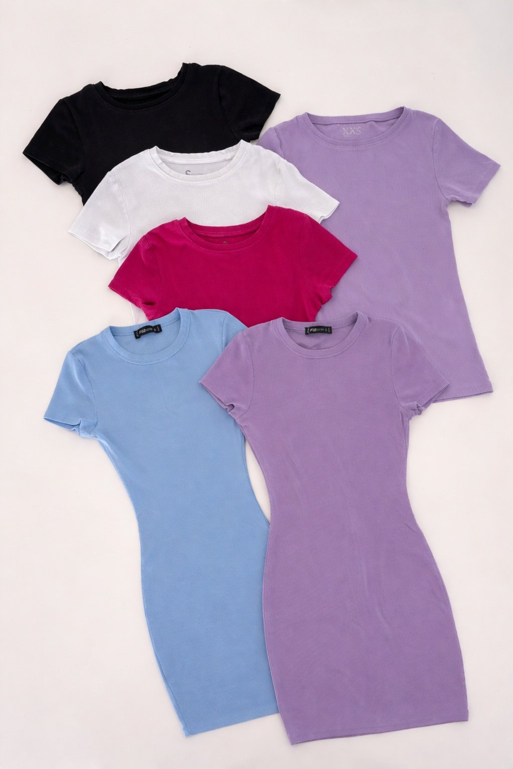 Cena za dvoje šaty (tričko a 3 crop topy přidám zdarma; bez vady je jen černé, ostatní mají nějakou vadu).