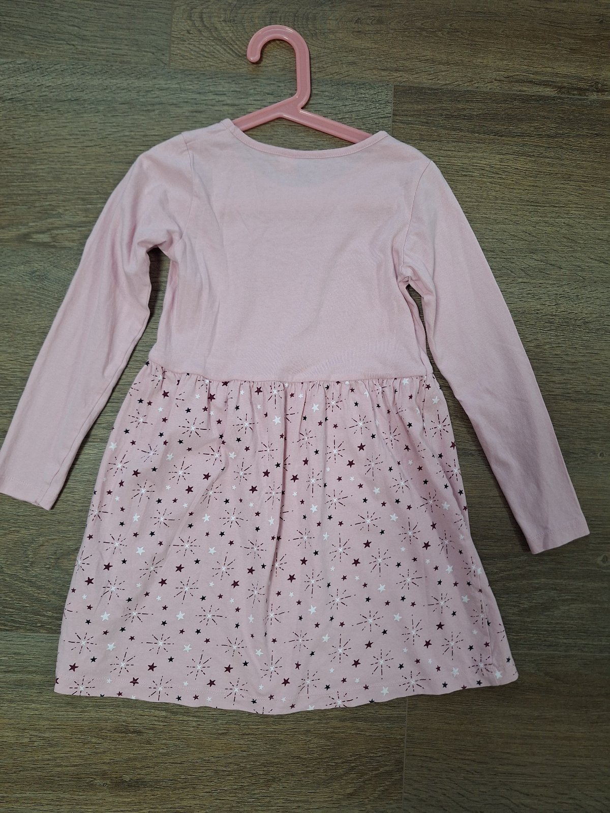 Prodám dívčí bavlněné pružné šaty sv.růžové vel.122/128 zn.H&M,délka 69cm,šířka 2x30-35cm,délka rukávu od krku 54cm,nošené,na předním díle flíček viz foto,jinak bez dalších vad,moc hezké,cena 100kč...
