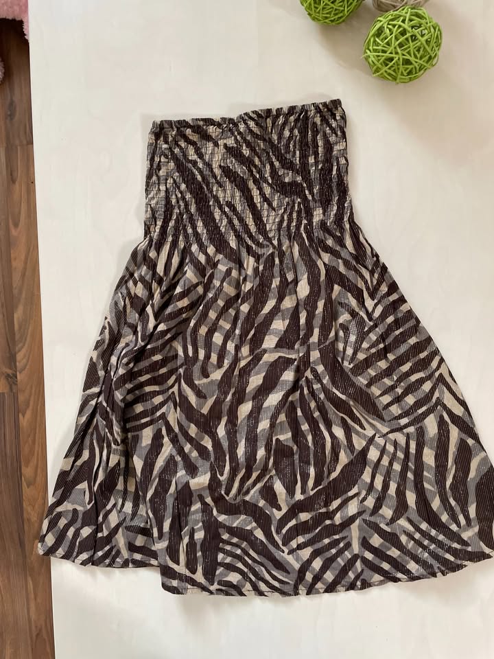 1072. nabízím k prodeji tyto letní šaty/nebo sukni se zlatou nití. Veliksot není uvedena měly by sednout XS/S (jako sukně i M), prosím měřte. Tenká měkčená látka. Béžovohnědý vzor, protkané zlatou nití. Nošené, málo, bez vad, krásné