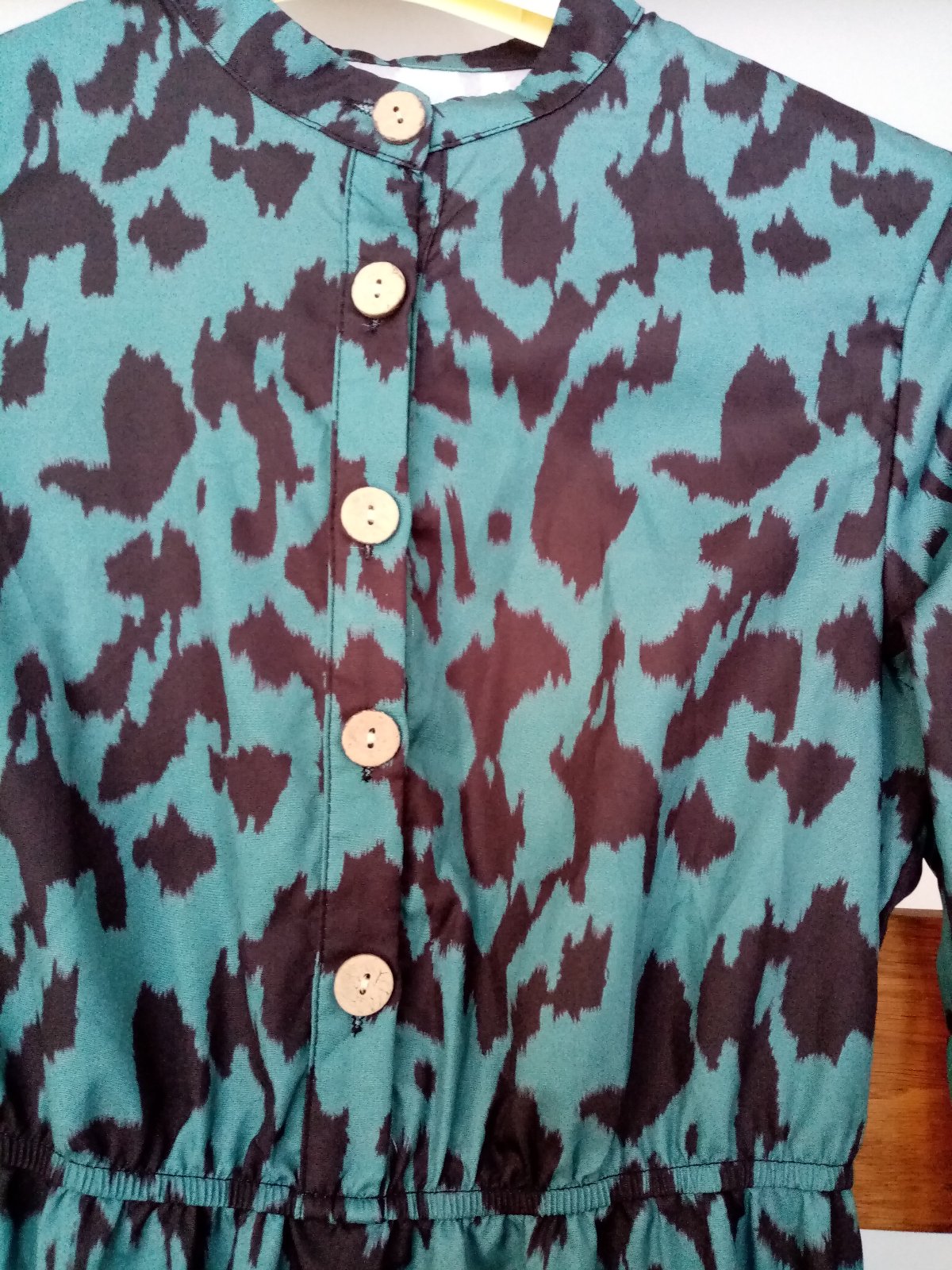 bez vad, dlouhý rukáv, v pase guma, přední díl je trochu kratší, velikost, rozměry a materiál jsou na fotkách