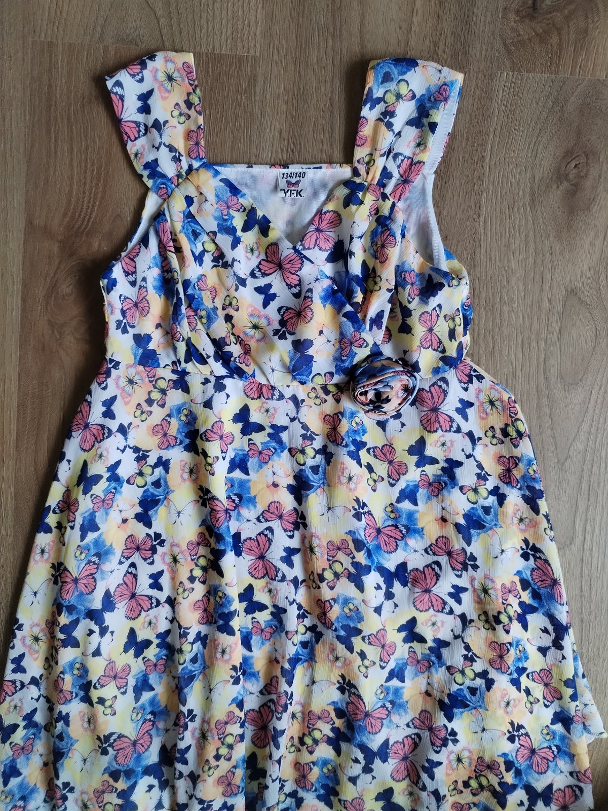 Krásné dětské dívčí lehké letní šaty značky Y.F.K ve velikosti 134/140, na ramínka, s motivem barevných letních motýlů, velmi příjemné a slušivé, v top stavu, vhodné i jako dáreček, velikost odpovídá, s podšívkou, z čisté nekuřácké domácnosti, cena 140 Kč