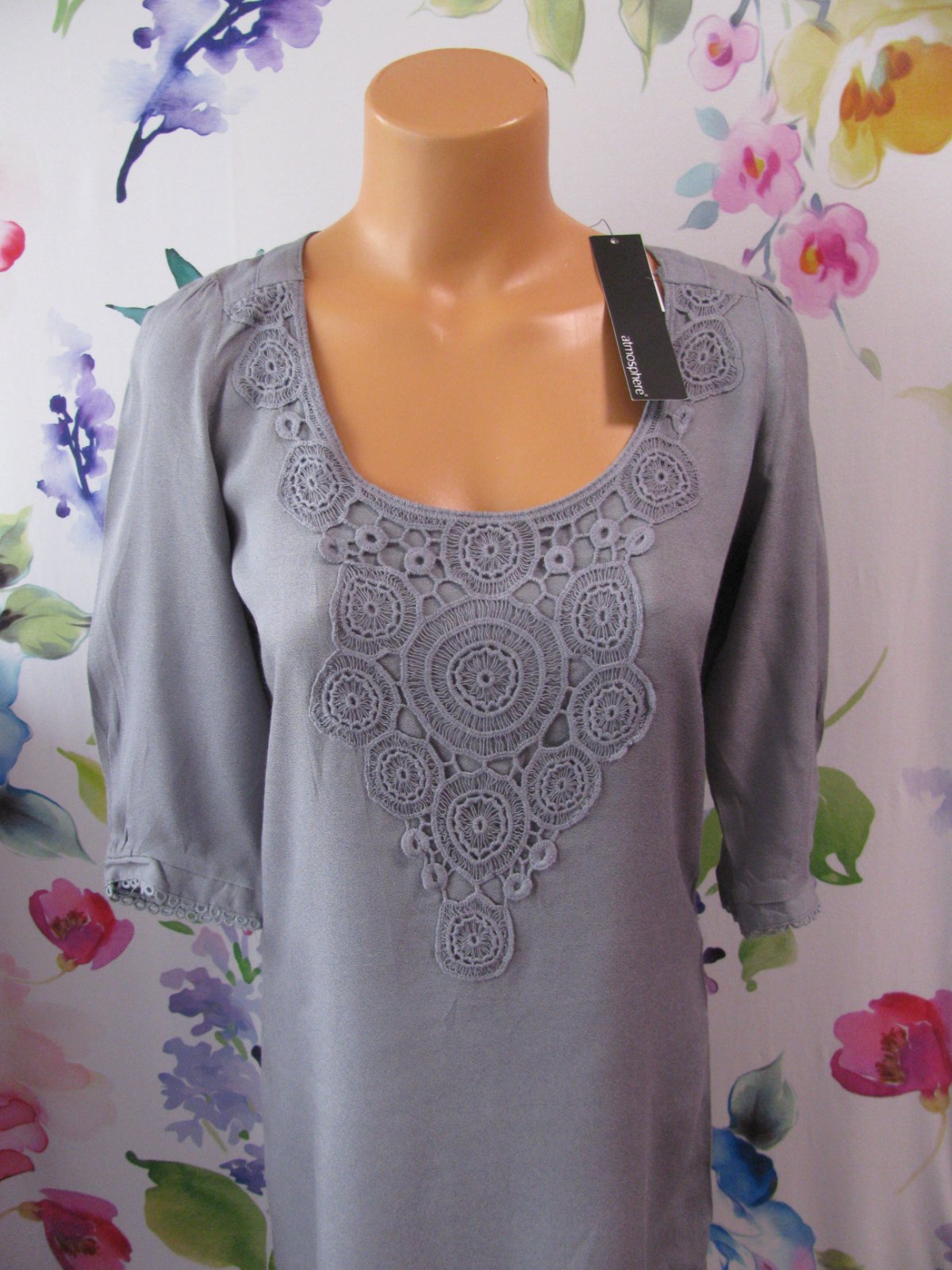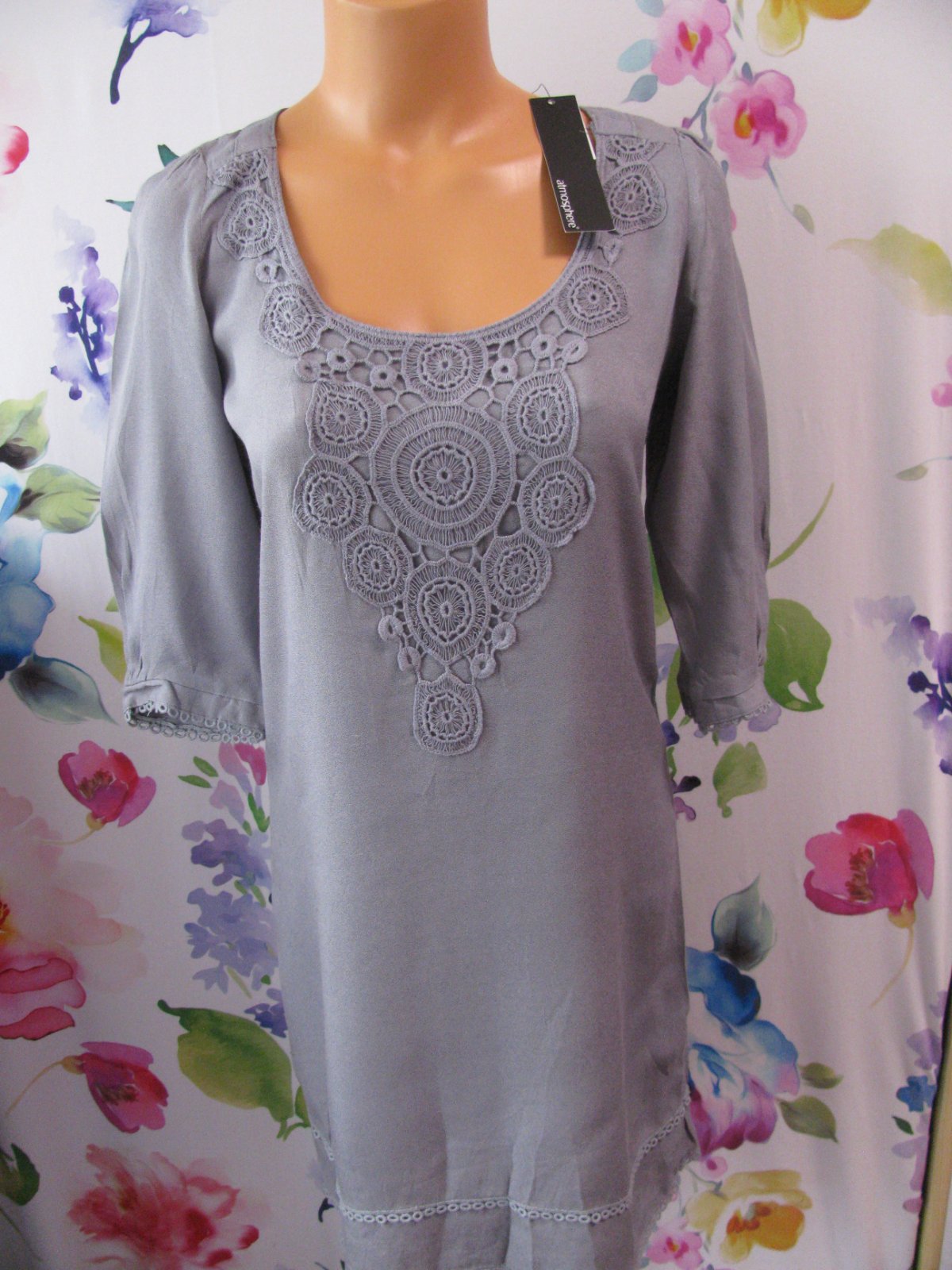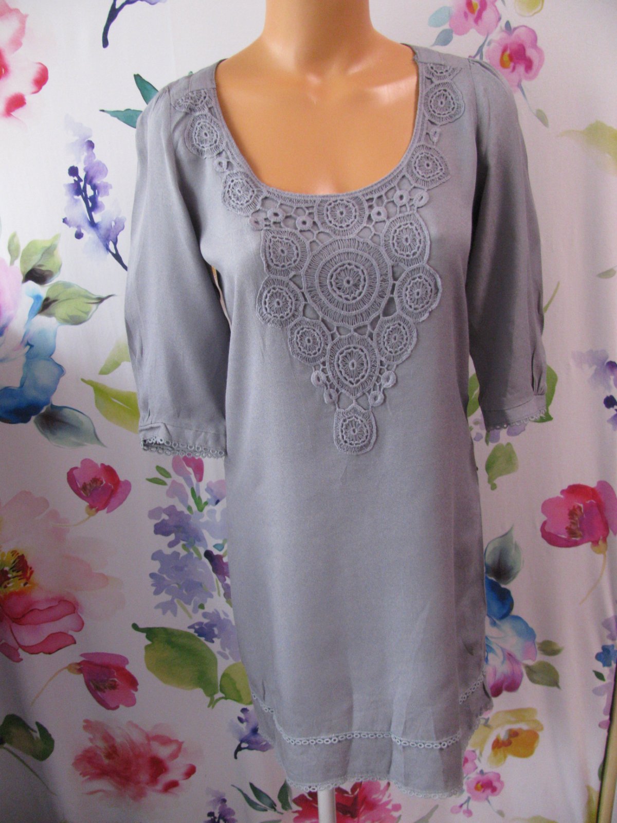 Krásné viskozové mini šaty, báječný chladivý materiál, na prsou zdobené krajkou, za krkem na knoflík, 100% viskoza.