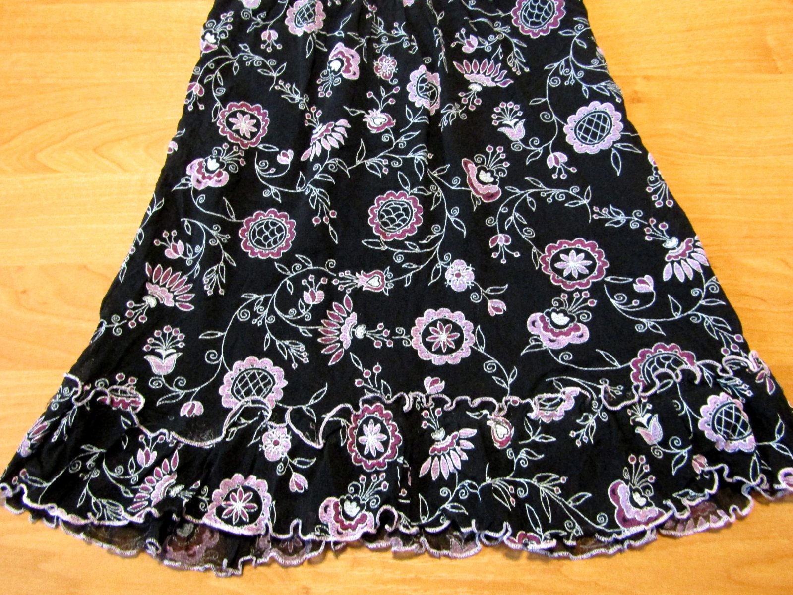 Antracitově černé,krásné, elastické,s volánkem, v pase do gumy,87% viskoza, 7% polyester, 6% elastan. Krásný stav, bez vady. Rozměry: dél.-54cm,,,šíře v podp.-2x29cm,,,pas-2x21cm,,,nataž.-2x34cm,,,...