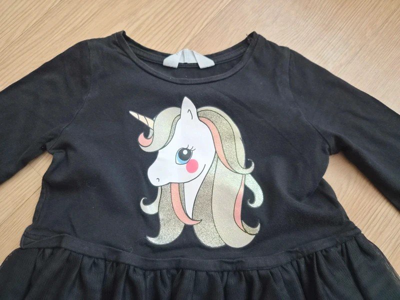 Šaty z H&M, moc hezké, velikost 98/104, nošené, vady jsem nenašla, udělají ještě velkou parádu