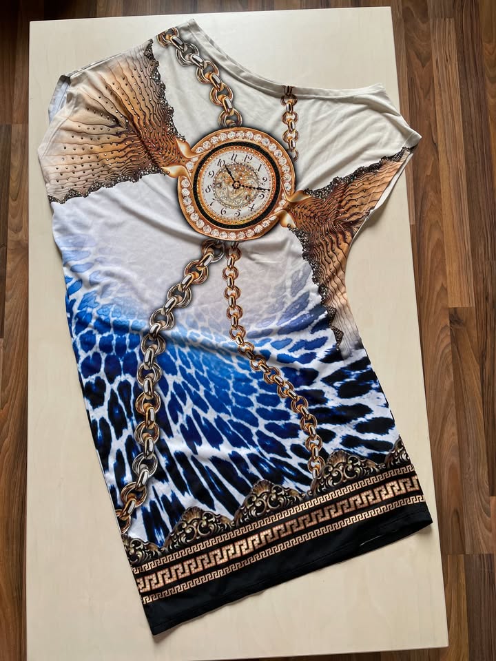 Minišaty/top hodiny a řetězy, vel 1 cca S/M, Tatu