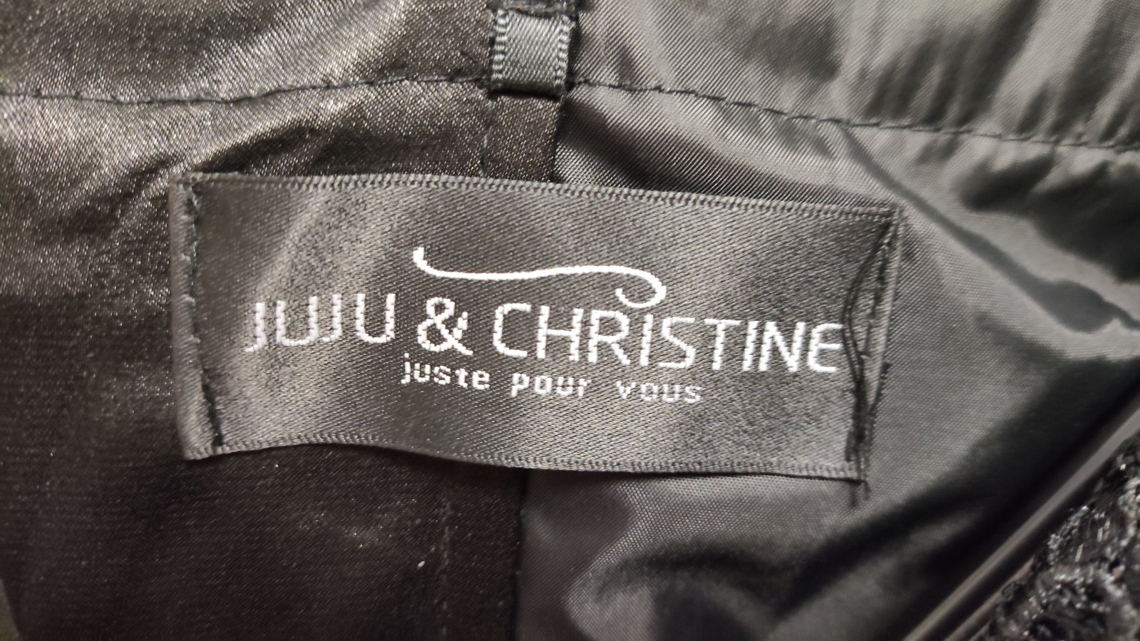 Nádherné společenské korzetové šatičky, sukně šifonová, korzetový díl vyztužen, místy pošit černými flitry. V zadní části skrytý zip +šněrování. Délka od podpaží 81cm, průramky 43cm +lze ještě povolit 3-4cm, pod prsy 39cm.Součástí šifonový šál. 100% polyester. Uvedená vel.4, odpovídají cca 38. PC 1.599,-