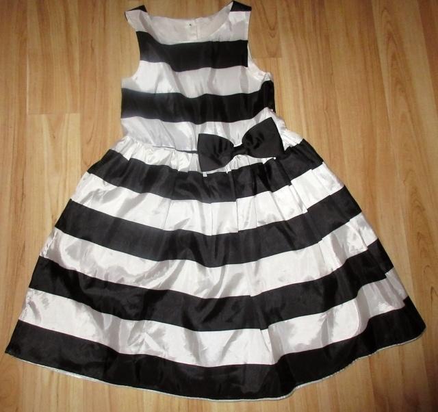 Šaty jsou nošené, v dobrém stavu, bez vad, vzadu u krku na zapínání, ozdobné mašlička v pasu