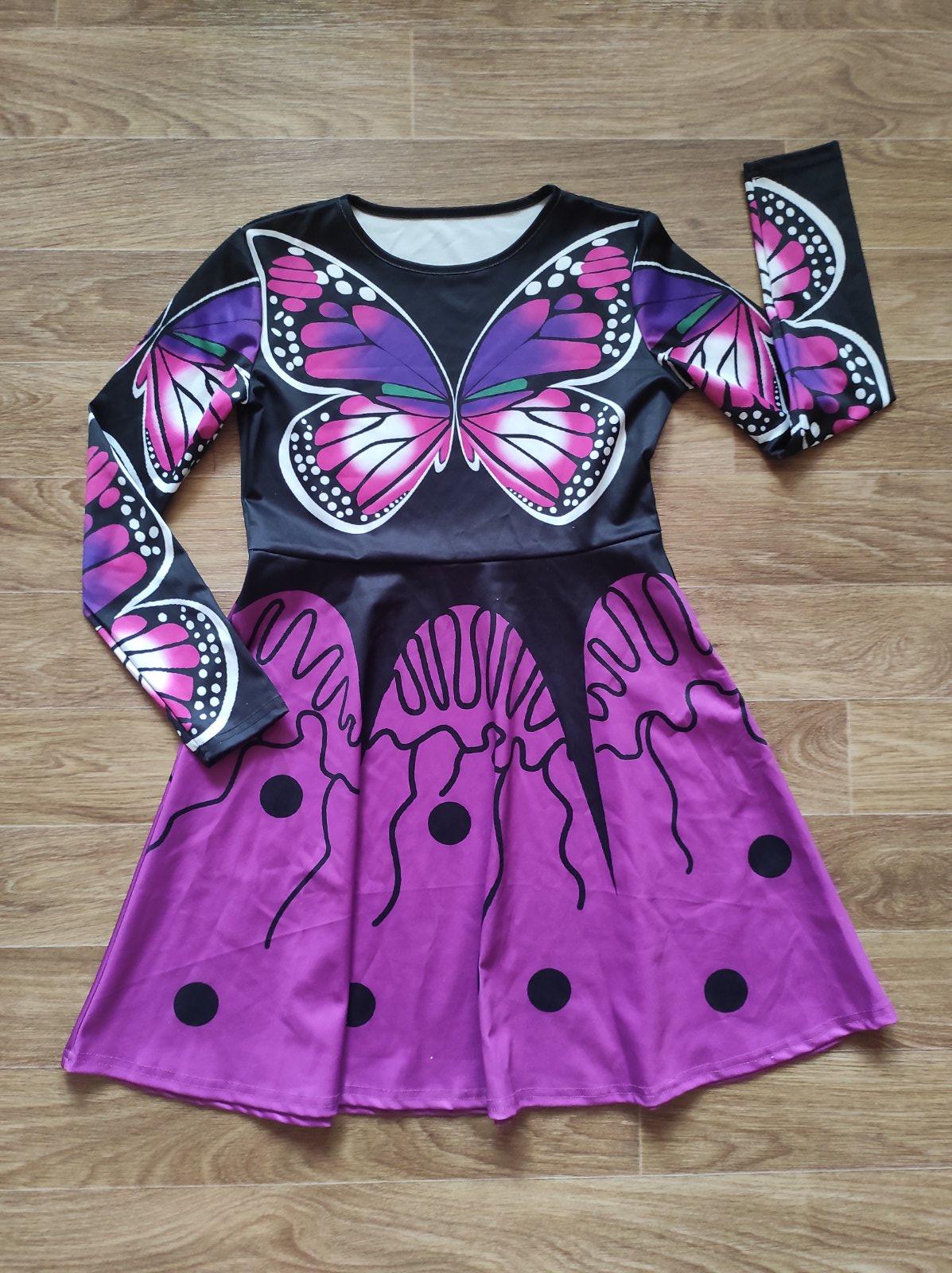 JAKO NOVÉ, BEZ ZNÁMEK NOŠENÍ. ÚSTŘEDNÍ BARVA JE NÁDHERNÁ MODROFIALOVÁ AŽ DO ŠVESTKOVA. MATERIÁL NEMAČKAVÝ, SPLÝVAVÝ A RYCHLESCHNOUCÍ 100% PES. VPŘEDU PŘEKÁRSNÁ APLIKACE MOTÝLŮ, VĚTVÍ A SRNEČŮ - PŮS...