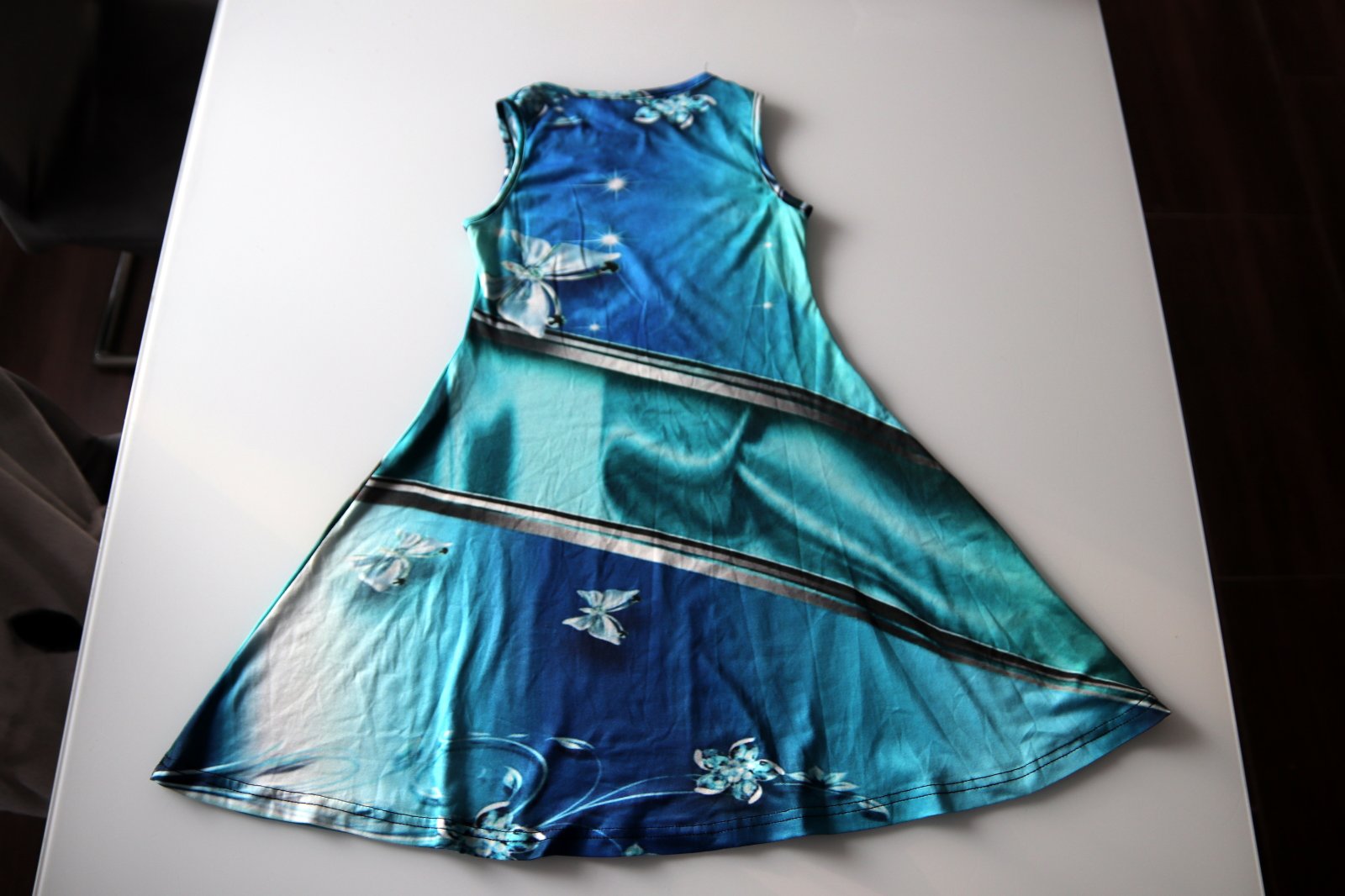 prodám dívčí letní šaty ve velmi pěkném stavu, málo nošené. Délka od výstřihu je 63 cm, obvod hrudníku je 60 cm. Pružný materiál s potiskem. Velmi lehounké.