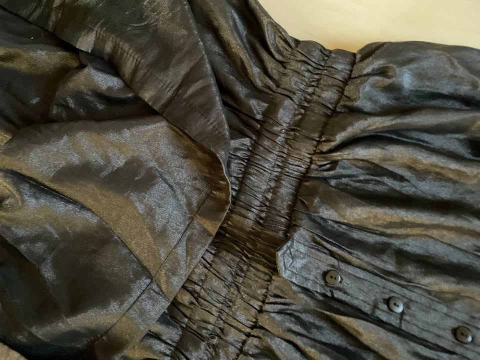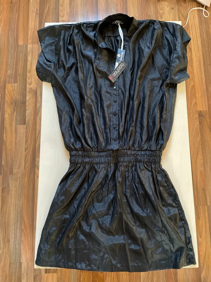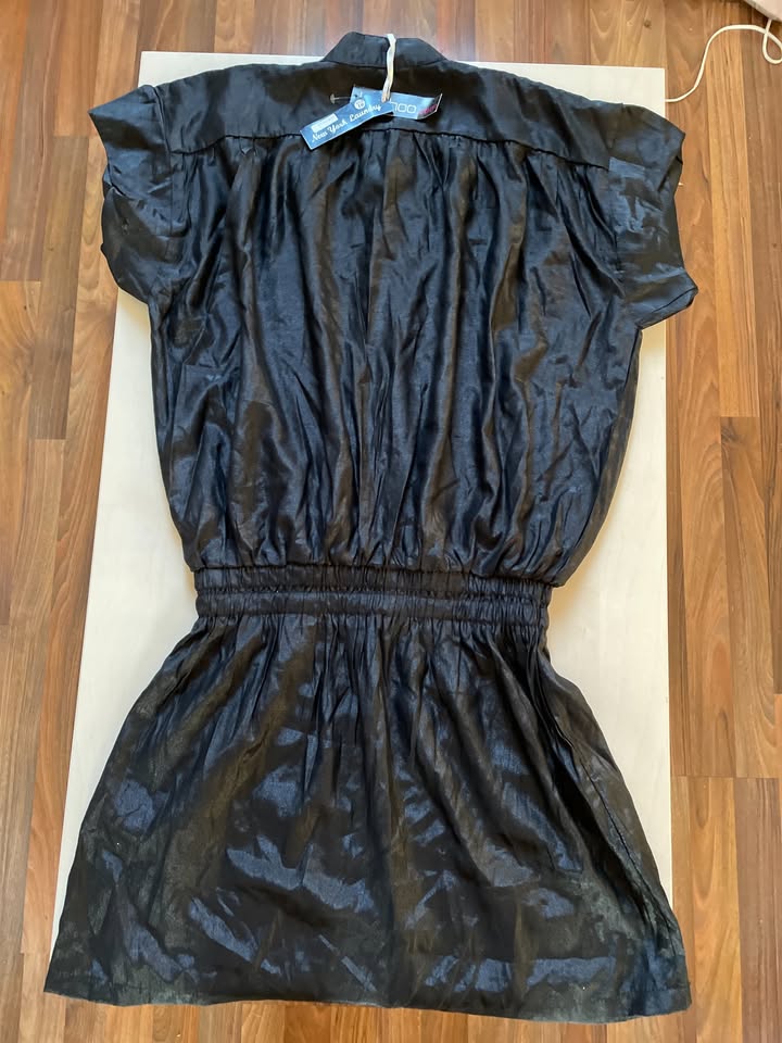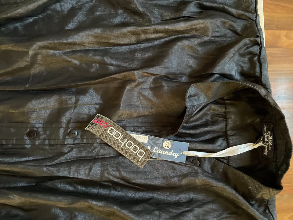 2049. nabízím k prodeji tyt černé volné šaty nebo dlouhá košile, vel 10/ tedy M ale je volně tedy i více, New York Laundry/Boohoo. Materiál lesklý, jako tenký saténový, 55% polyester, 45% bavlna. Top volný, řasený, do pasu podkasán do žabičkování. V sukni kapsy. Nové s visačkou, bez vad, krásné