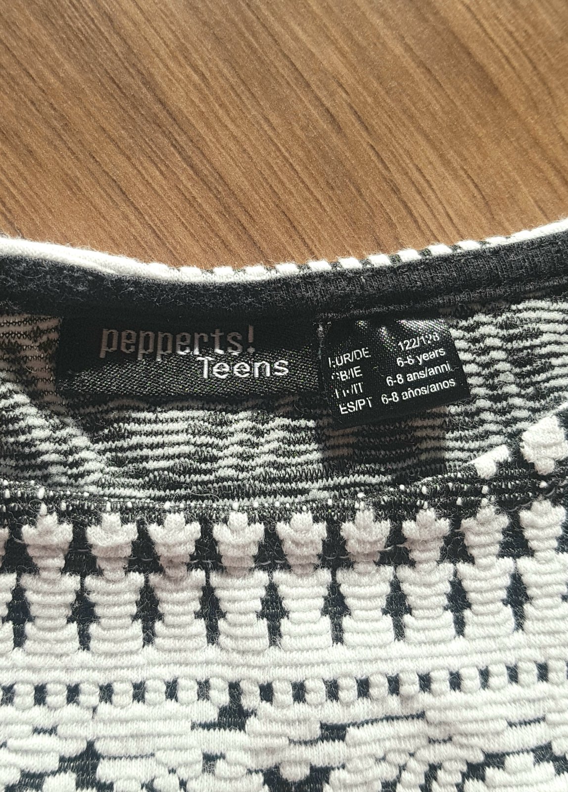 Teplejší šaty, černobílý vzor, vhodné i na slavnostnější příležitosti. Velikost uvedena 122-128.