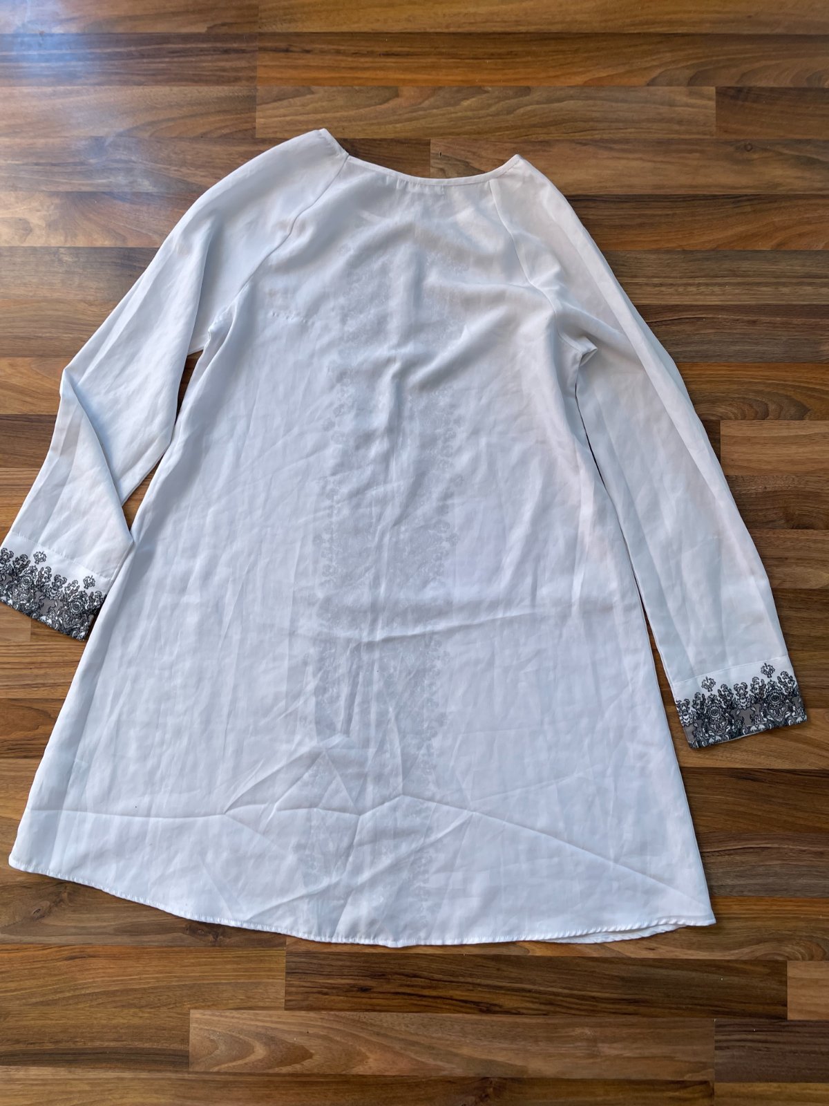 jar. nabízím, k prodeji tyto lehké šaty, nebo tuniku sejako přehoz přes plavky, vel S, Etab 1999. Umělý, lehce prosvítavý materiál. 100% polyester. Nošená, bez vad, krásná