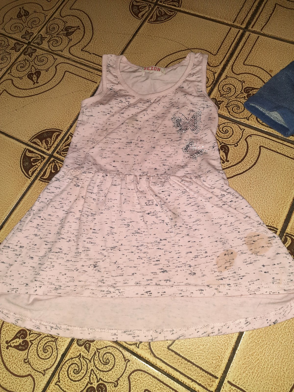 Prodám šaty v zachovalém stavu, značka: Pepco, Sezon, velikost růžových: 98 - 104, modrošedých: 98 - 110, růžové mají flíčky, možná půjde vyprat, modrošedé mají 2 dírky na sukýnce a 1 vadu, vše vyfoceno, cena tomu přizpůsobena, složení růžových: 65 % bavlna, 30 % polyester, 5 % elastan, modrošedých: 65 % bavlna, 31 % polyester, 4 % metalické vlákno. Cena za oboje šaty je: 20 Kč + poštovné. Krabice č. 41.