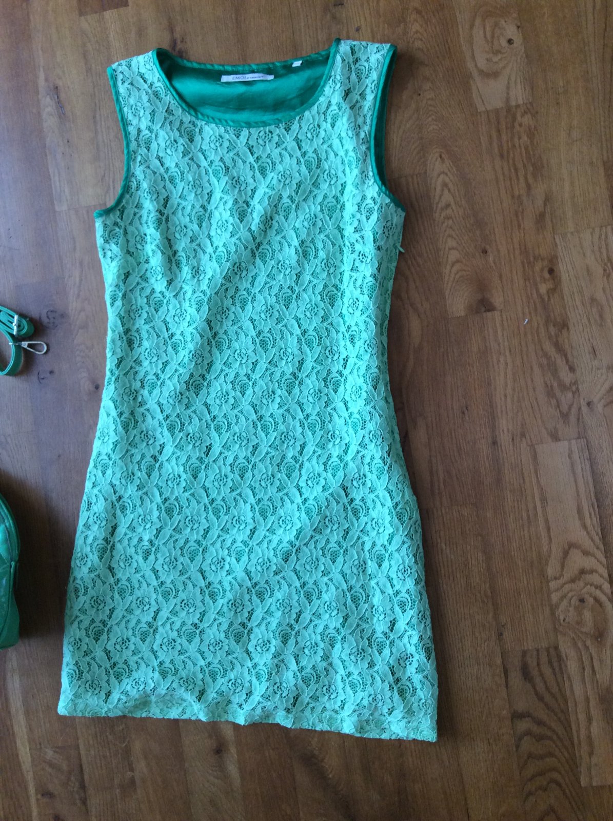 Prodám dámské zelenkavé šaty EMOI vel. 36 s kabelkou viz. foto v TOP stavu. Cena při osobním odběru 300Kč nebo cena vč. dopravy 390Kč při platbě předem na účet