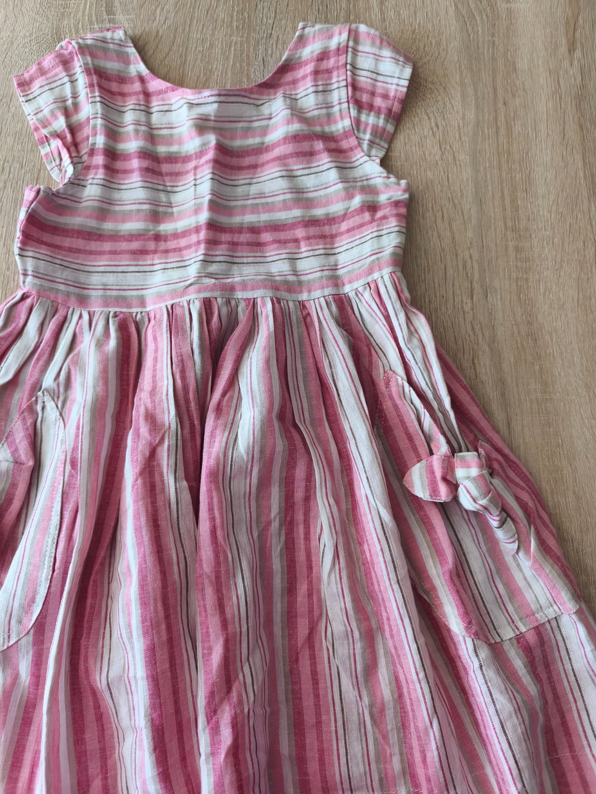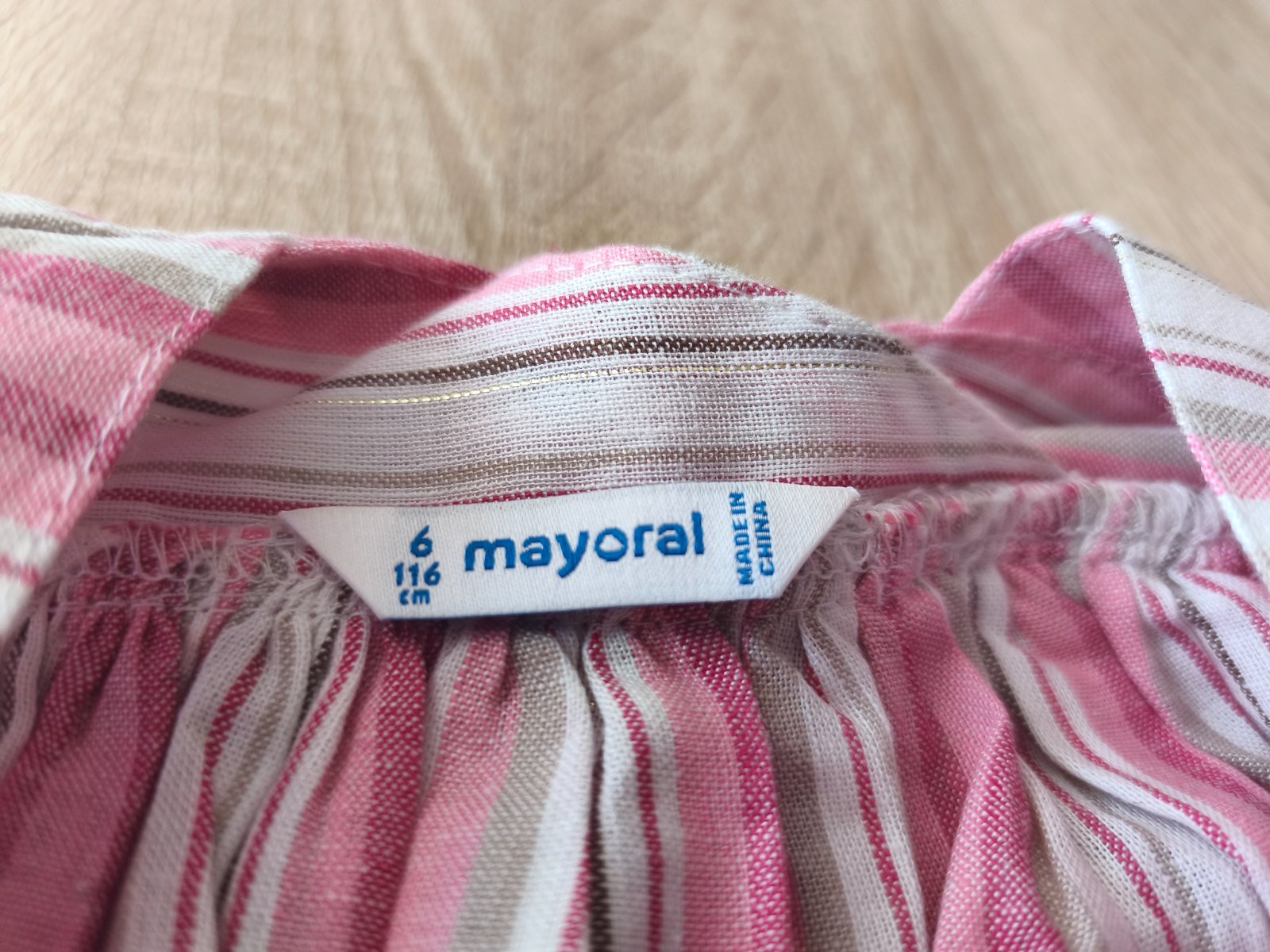 krásné dívčí šaty od španělské značky Mayoral, model s poloodkrytými zády.... Nové, bez visačky... z boku všitý zip pro lepší oblékání ... na oředním díle jsou kapsy.... vyrobeny jsou z 43%len, 29%lyocel, 27% bavlna... velikost psaná 116...