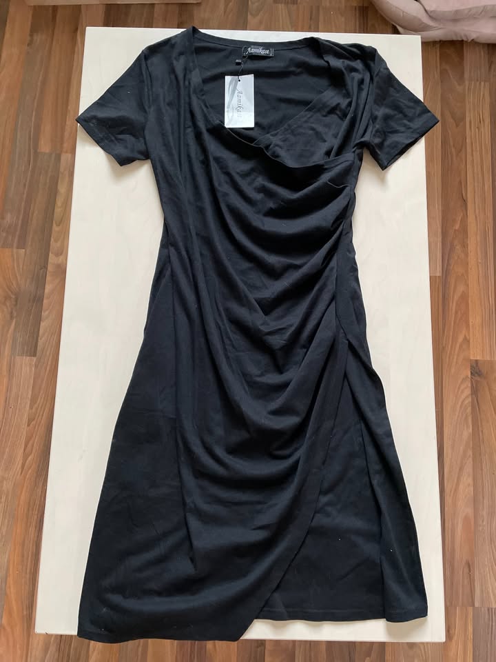 2880. nabízím k prodeji tyto černé řasené do strany šaty, NOVÉ s visačkou, vel L, Aamikast. Materiál jako trika, sukně do strany nařasena v převinu další látky. Nové, bez vad, krásné