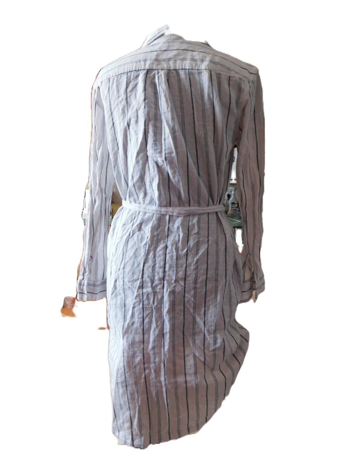 Krásné košilové šaty s dlouhým rukávem ... nové s visačkou ... v pase pásek .... vyrobeny z 52% len a 48% bavlna ... velikost psaná 34 ... myslím si že obléknete i s vel. 36 ... přesto se řiďte mírami ...