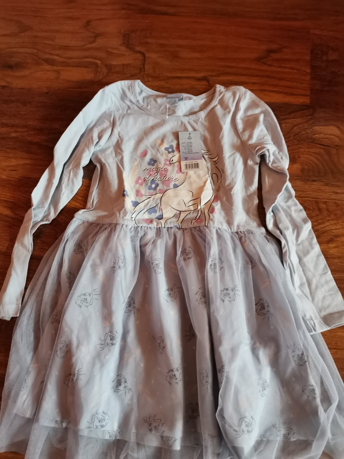 Šatky s dlouhým rukávem, mají pouze jemný prací chloupek, jinak bez vad a fleků. Uvedená velikost 122/128