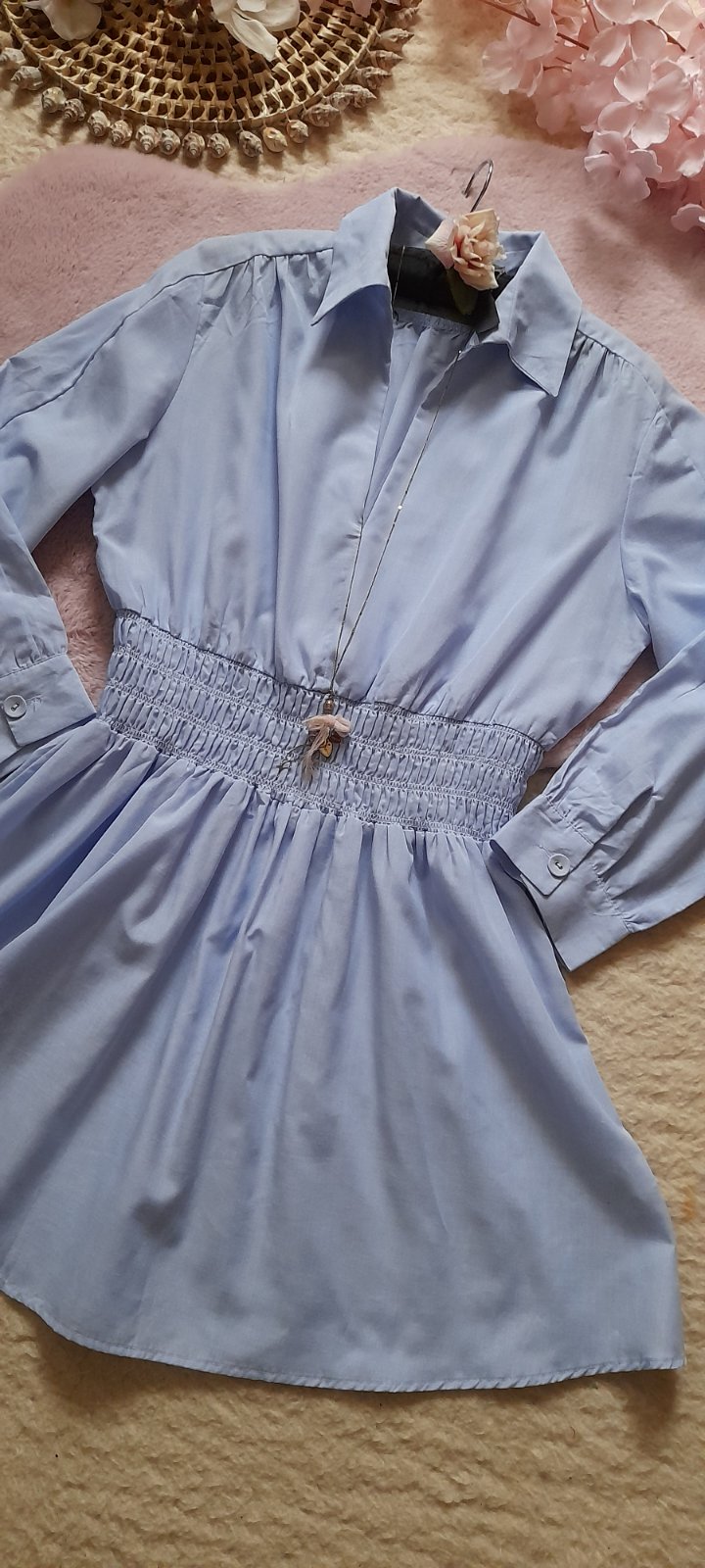 ✒ popis: košilový střih, v pase žabičkování - přizpůsobí se a tvoří pěknou postavu