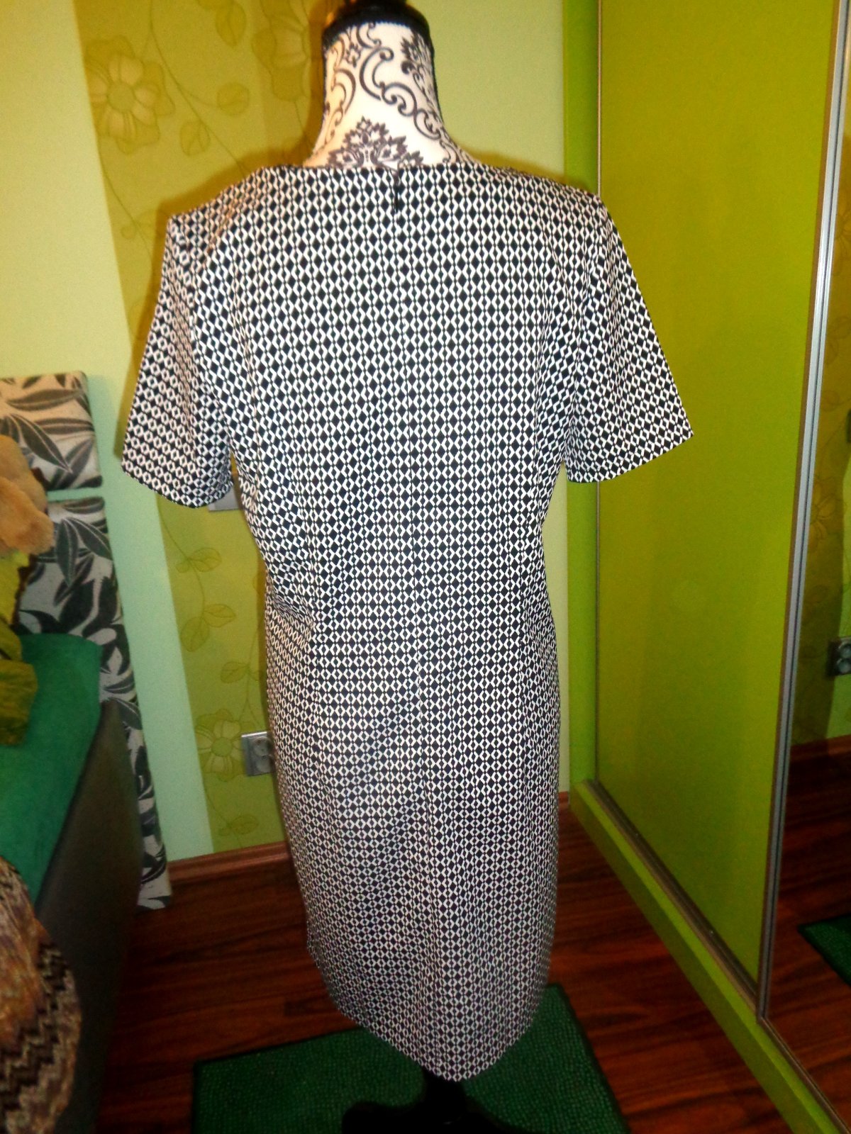 NOVÉ -JEN BEZ CEDULKY. KRÁSNÁ ČERNOBÍLÁ KOMBINACE. VZADU ZIP. STŘEDNĚ SILNÝ MATERIÁL - NEMAČKAVÝ A VELMI PŘÍJEMNÝ. 100% PES.