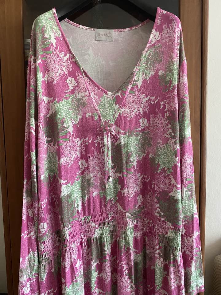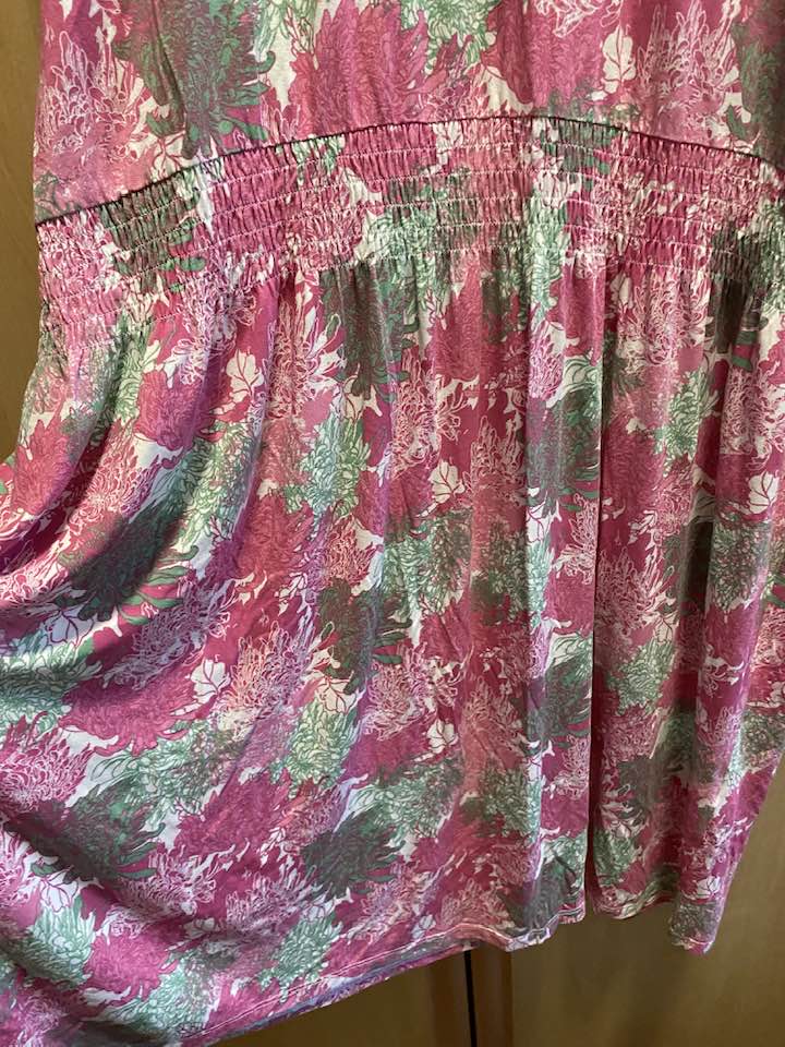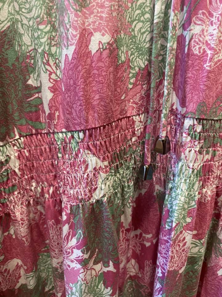 Pěkné šaty s potiskem velkých květů....Volánové rukávy ....Vzadu jsou na zip. Minimálně nošené. Velmi dobrý stav. Míry : délka 90 cm, pas 2 x 35 cm, průramky 2 x 47 cm, délka rukávů od krku je 67 c...