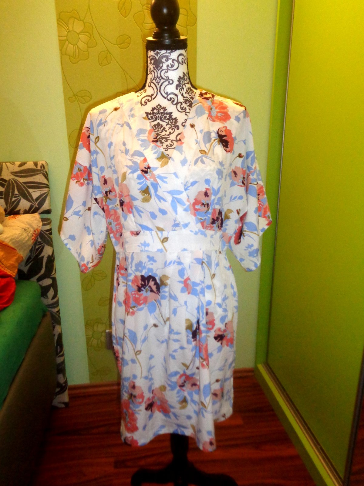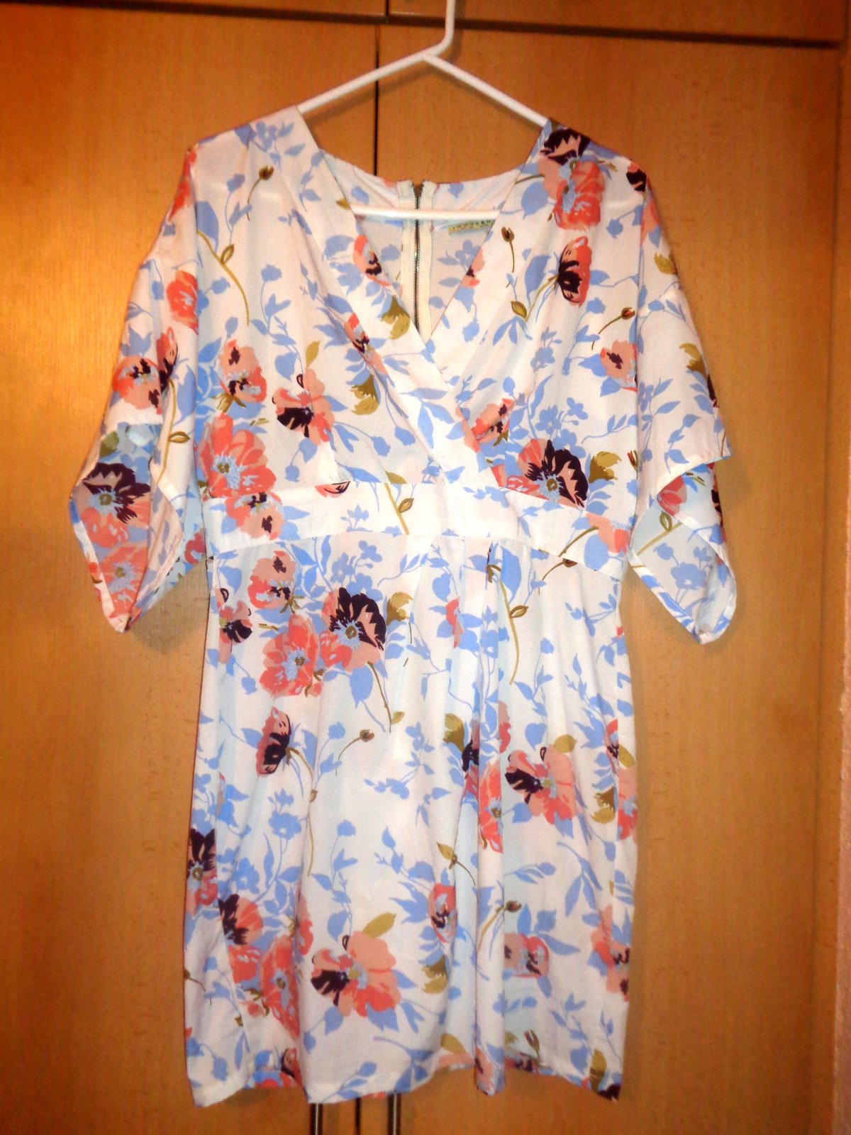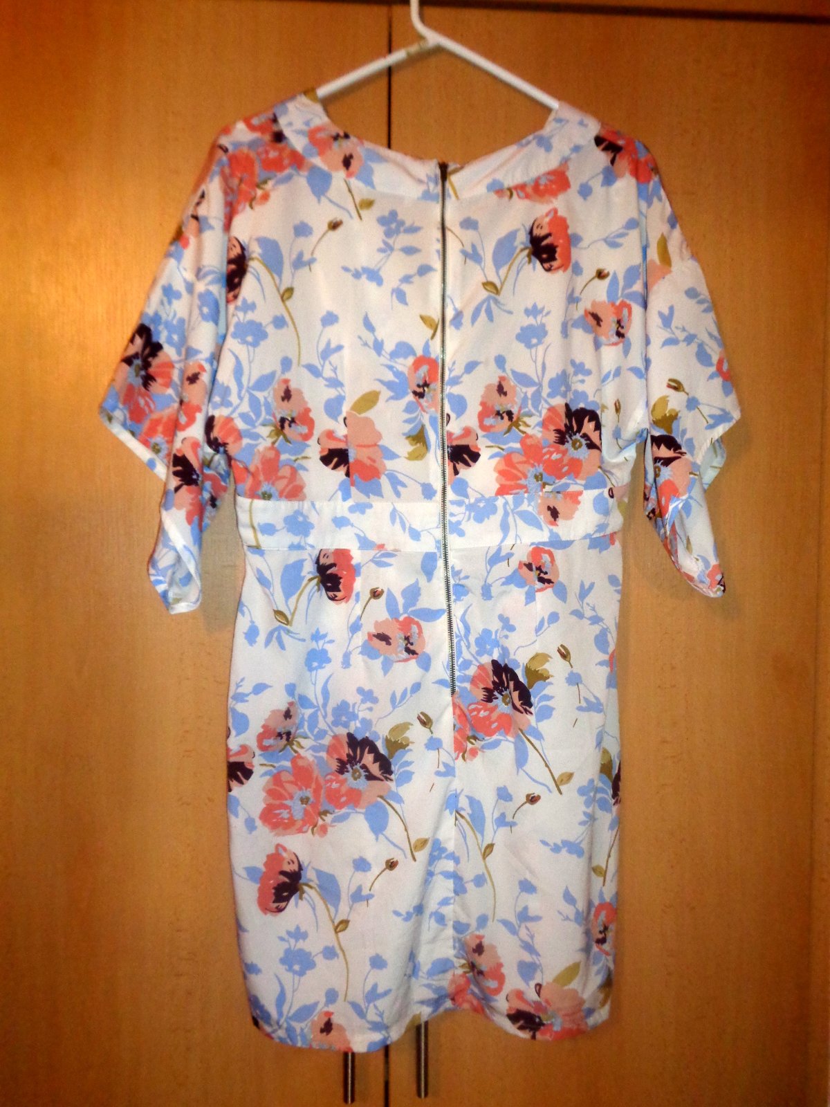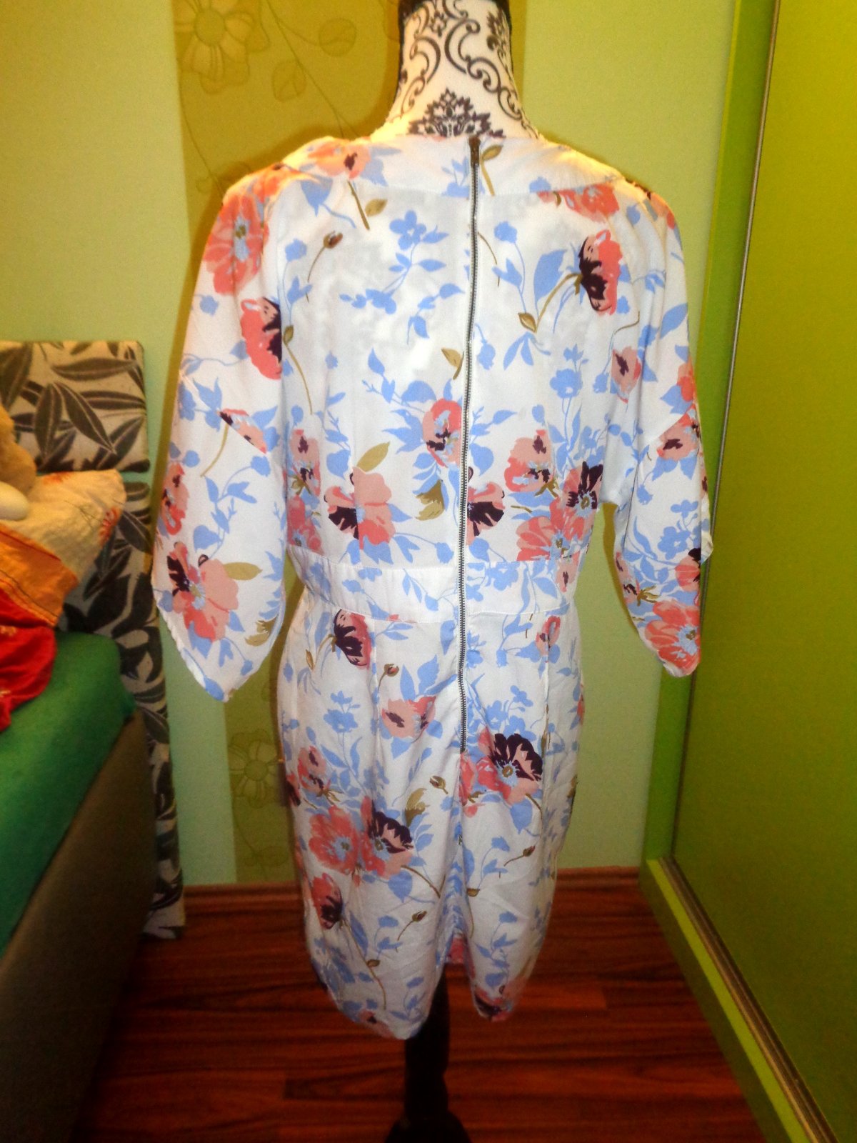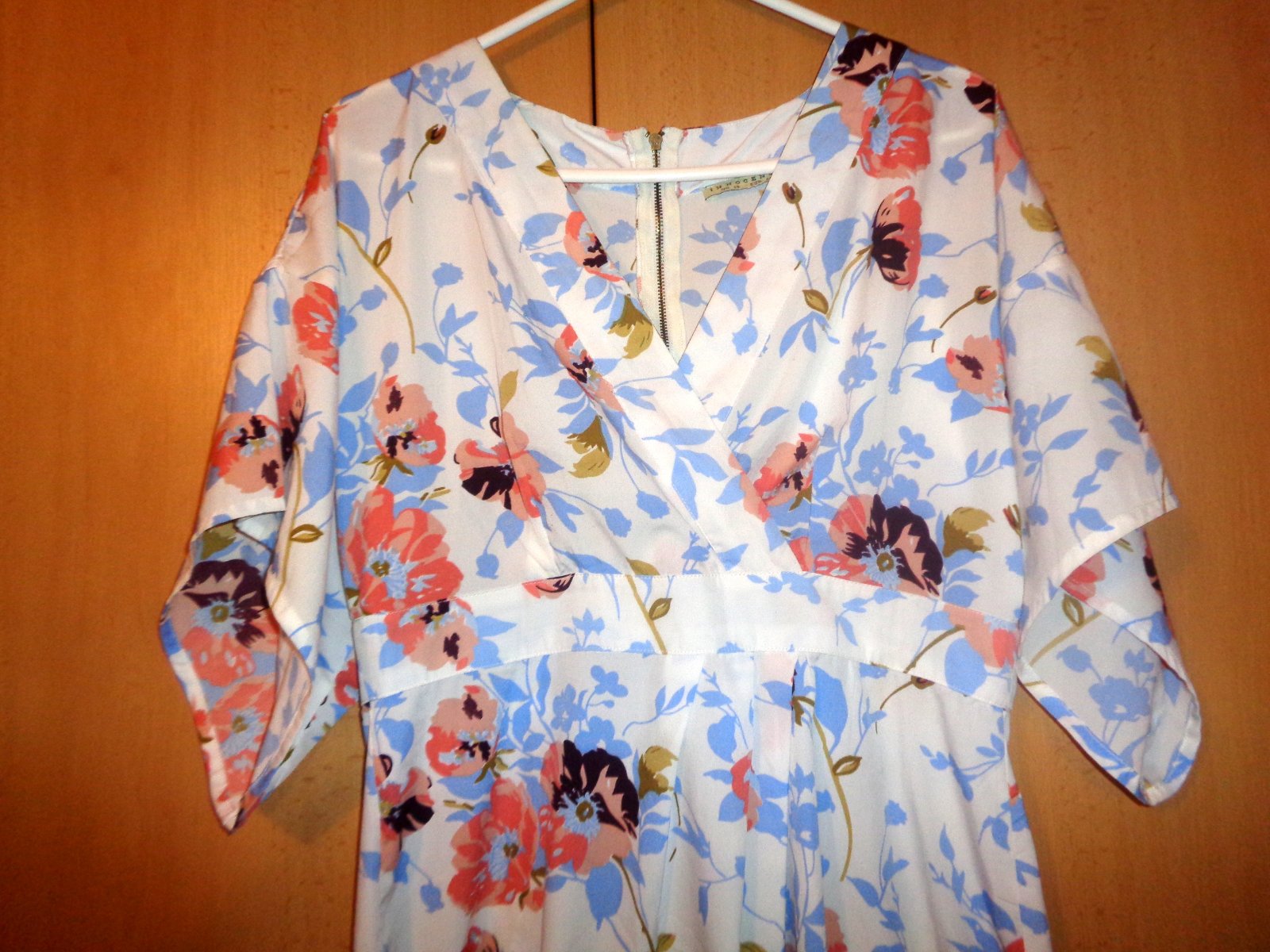 PŘÍJEMNÝ VZDUŠNÝ MATERIÁL - 100% PES. BÍLÁ BARVA A MODRÉ A ČERVENÉ KVĚTY. VZADU NA ZIP. SUPER STAV - BEZ VADY - NOŠENÍ NENÍ ZNÁT.