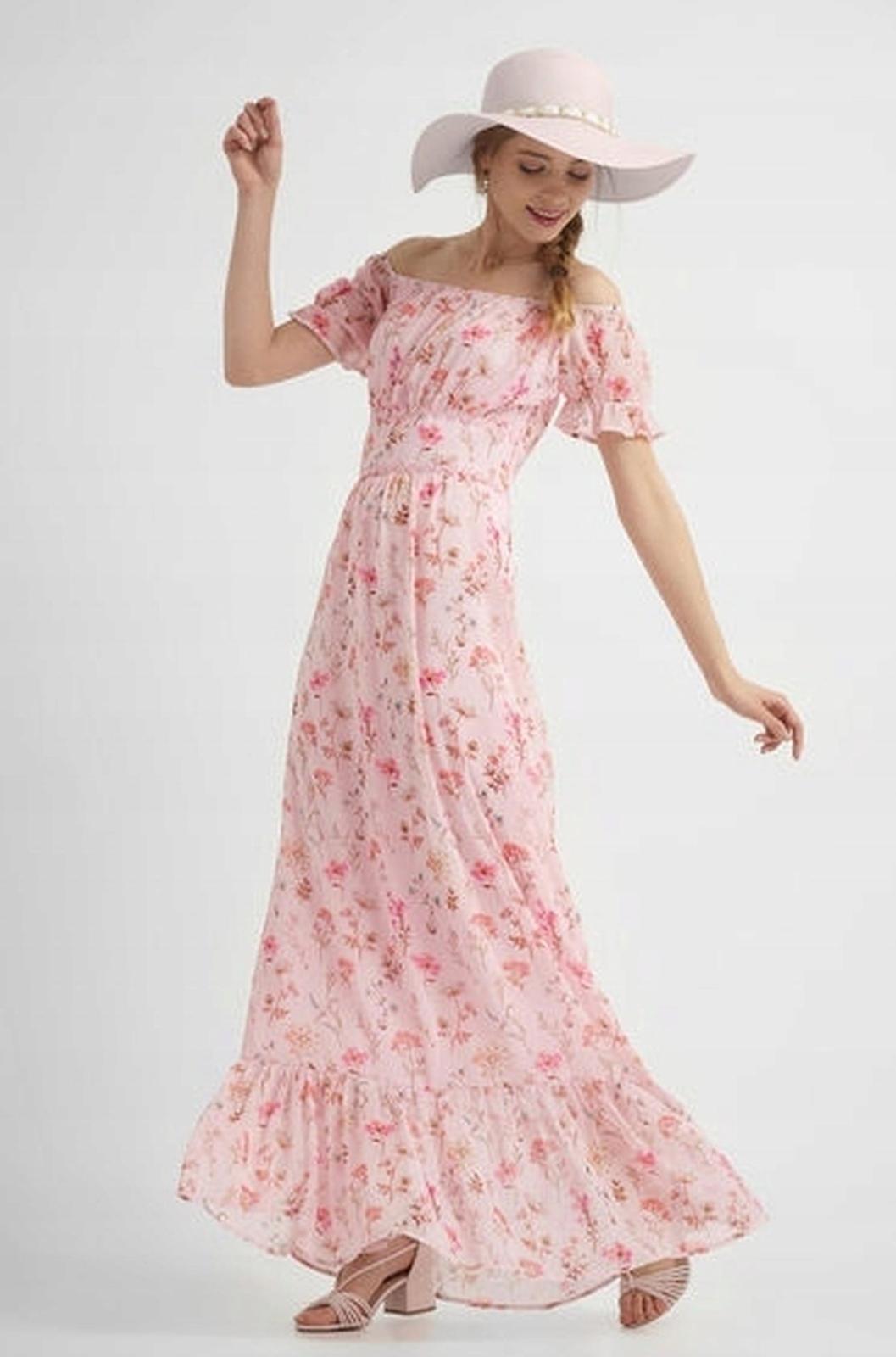 Dlouhé květované šaty růžové carmen Orsay S 36
