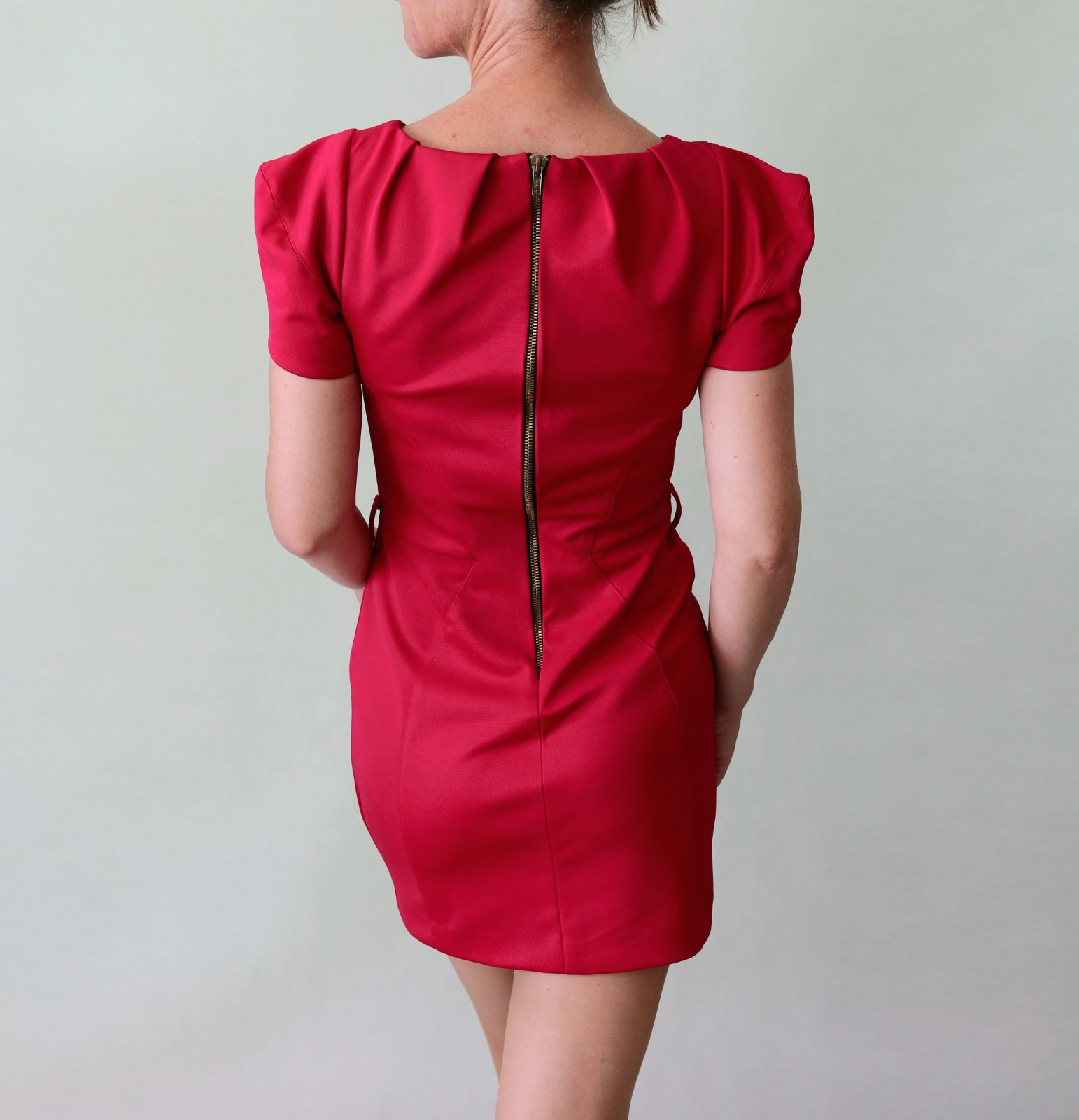 Perfektně propracované červené pouzdrové minišaty River Island. Tvarované rafinovanými záševky kolem výstřihu, v pase projmuté šikmým bočním dílem. Jedinečné jsou hranatě tvarované rukávky. Materiál pružný 95% polyester, 5% elastan, barva červená, spíš chladnější tón do malinové až růžové. Velikost 8/34, rozměry: šířka ramen 33 cm, prsa 86 cm, pas 71 cm, boky 83 cm, délka šatu do pasu 38 cm, délka celých šatů 79 cm. Jsou v super stavu jako nové. Odesílám poštou, Balíkovnou, Zásilkovnou, PPL po předchozí platbě, cenu za odeslání vždy sdělím předem.