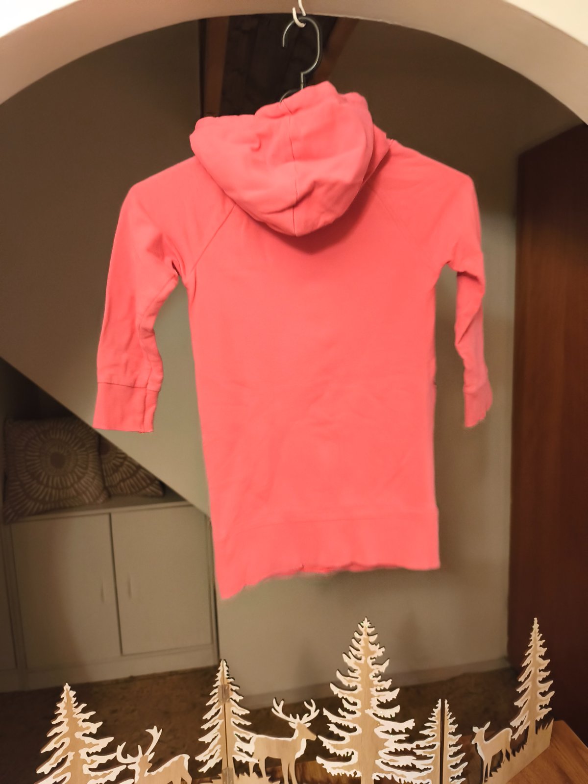Růžové mikinošaty, známky praní na barvě. Ustřižené cedulky.