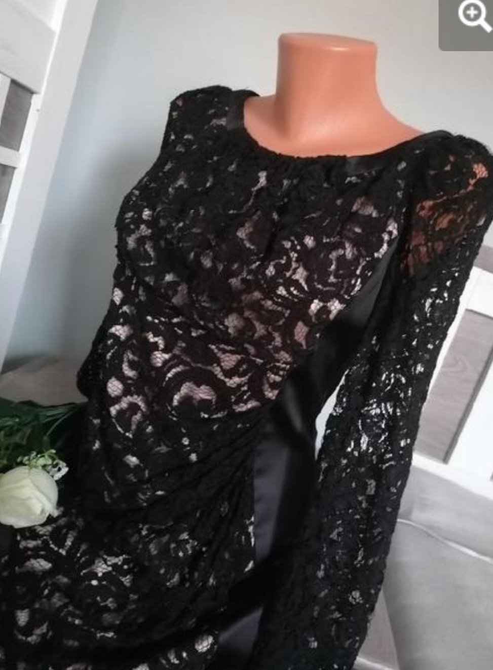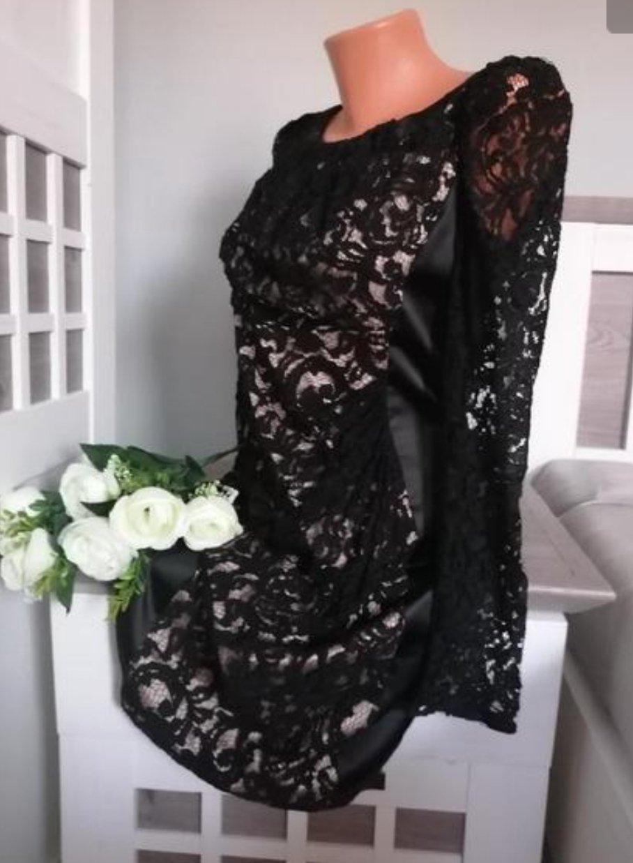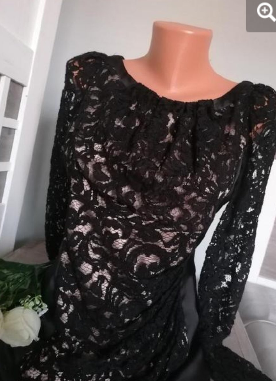 Pěkné večerní šaty. Kombinace lesklého materiálu s krajkou. Přední díl krajkový je podšitý khaki lesklou látkou. Šaty jsou rovného střihu. Krajkové rukávy, pod krkem a po levé straně nabírané....Měla jsem je jen jednou na sobě....Velmi dobrý stav. Velikost uvedena M, ale já se raději přikládám k S. Měřte.... Míry: délka 89 cm, pas 2 x 38 cm, průramky 2 x 43 cm a délka rukávů od krku je 64 cm. Materiál: cotton, viskosa a nylon...Poštovné - balíkovna 85 Kč nebo zásilkovna za 90 Kč.