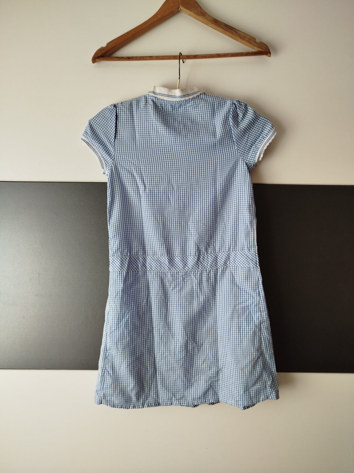 Délka 80cm, šířka pod průramky 39cm, modrobílá kostička, nošené krátce