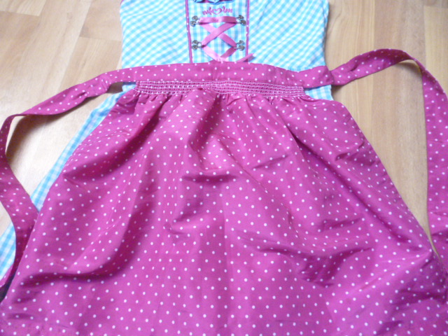 nošené málo, pěkné, délka je 69 cm, pas 2x28 cm, průramky 2x32 cm, zástěra jde odepnout, psaná vel. 5-6 zn.Lupilu
