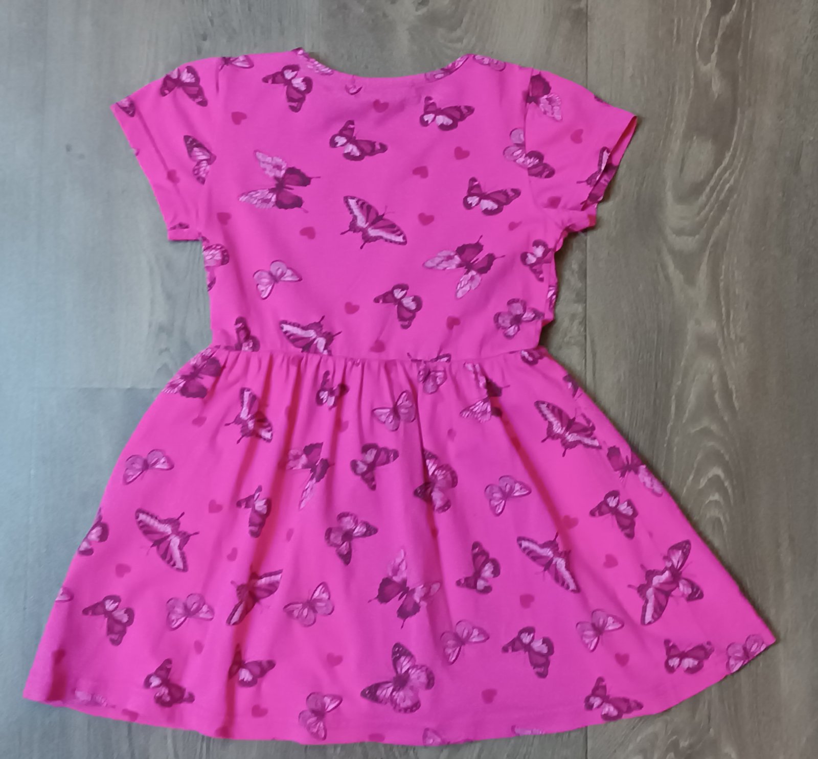 2) bavlněné šaty s motýly, vel. psaná 4 roky, ale jsou menší, ideálně 3 roky