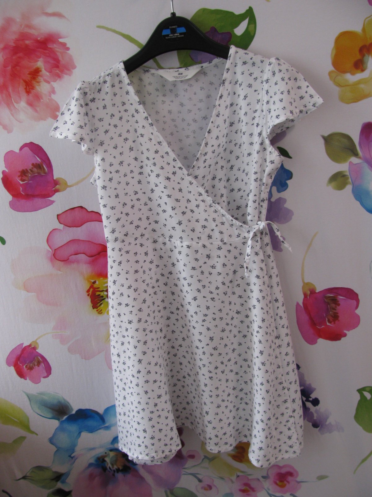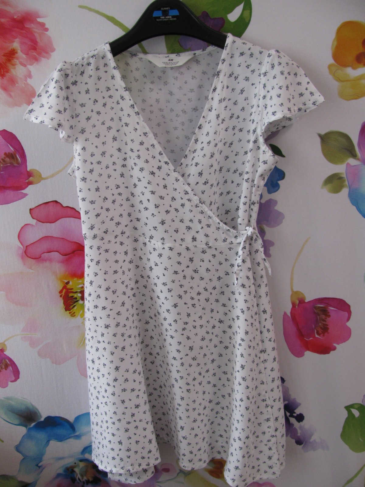 Krásné, bílé zavinovací šaty značky H&M vyrobené ze vzdušné viskózy s květinovým vzorem, jsou čisté, nezaprané, bez fleků v podpaží. Top stav.