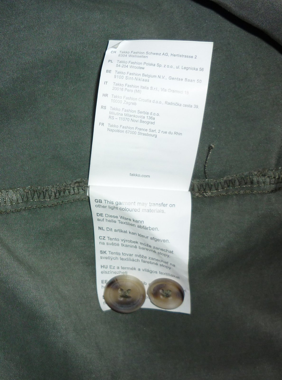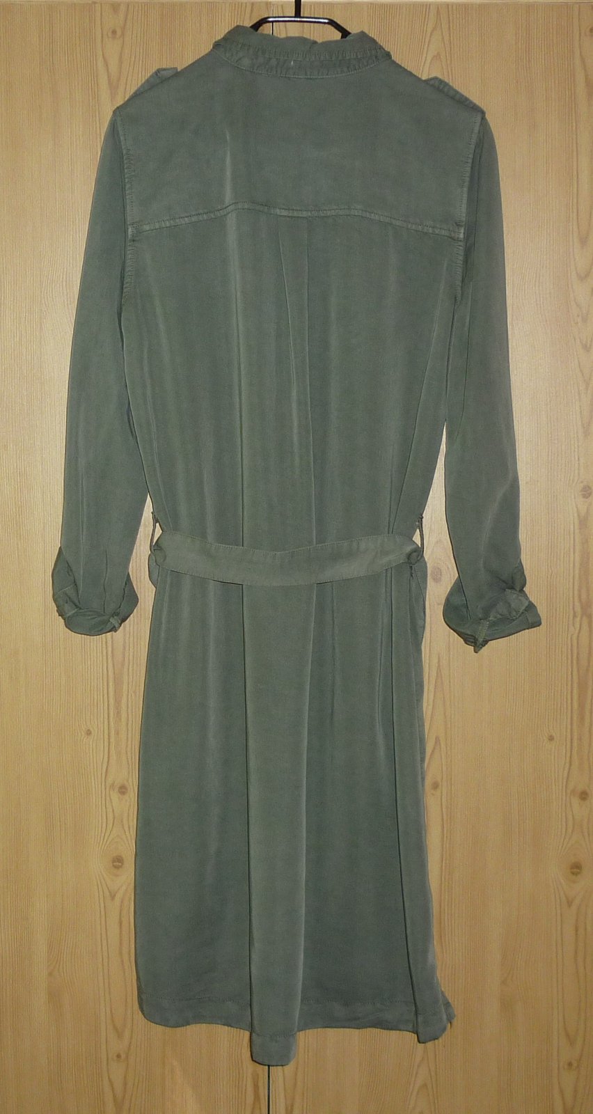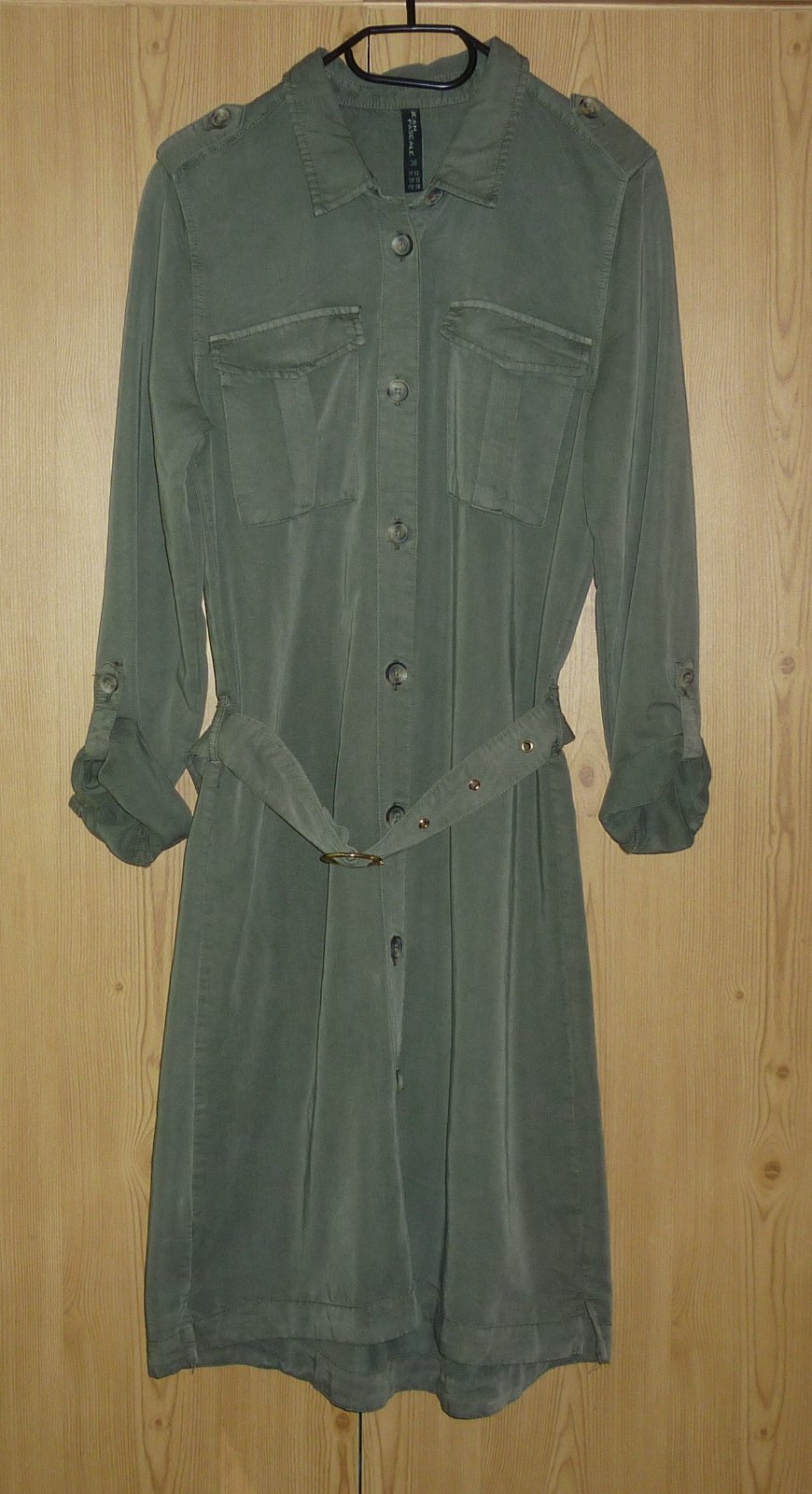 Prodám khaki dámské košilové šaty Takko Fashion, nové, nikdy nenošené, pouze bez papírové visačky. Límeček, celopropínací na knoflíky, nahoře 2 našité kapsy s klopami, pásek, dlouhé roll-up rukávy, dole v bočních švech rozparky. Materiál: 68% viskóza a 32% polyester. Velikost: 36. Rozměry: šířka v místě podpaží 49cm x 2, šířka v místě pasu 48cm x 2, délka rukávu od ramene 64cm, celková délka předního dílu 99cm, celková délka zadního dílu 101cm. Cena: 290,-Kč + poštovné. Koukněte na moje další inzeráty, třeba si něco vyberete a ušetříte na poštovném. Tel.: 728 455 567