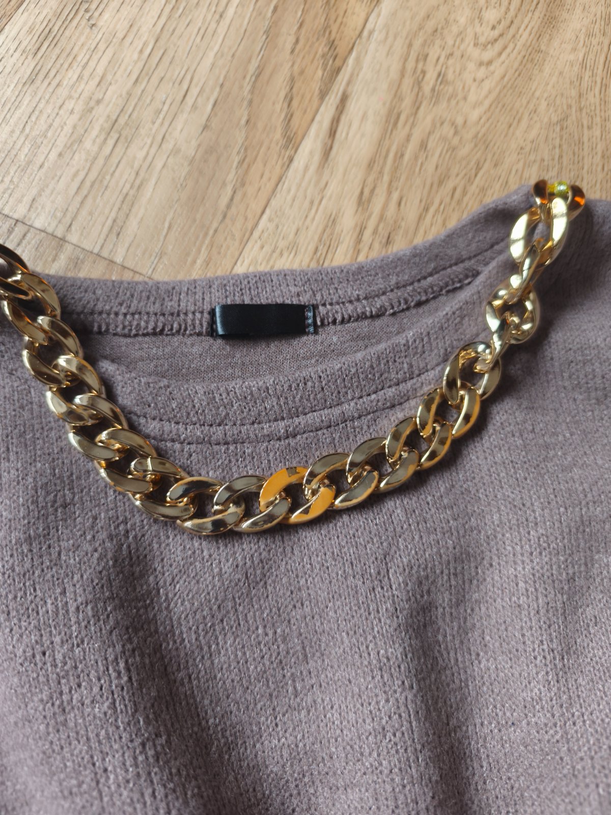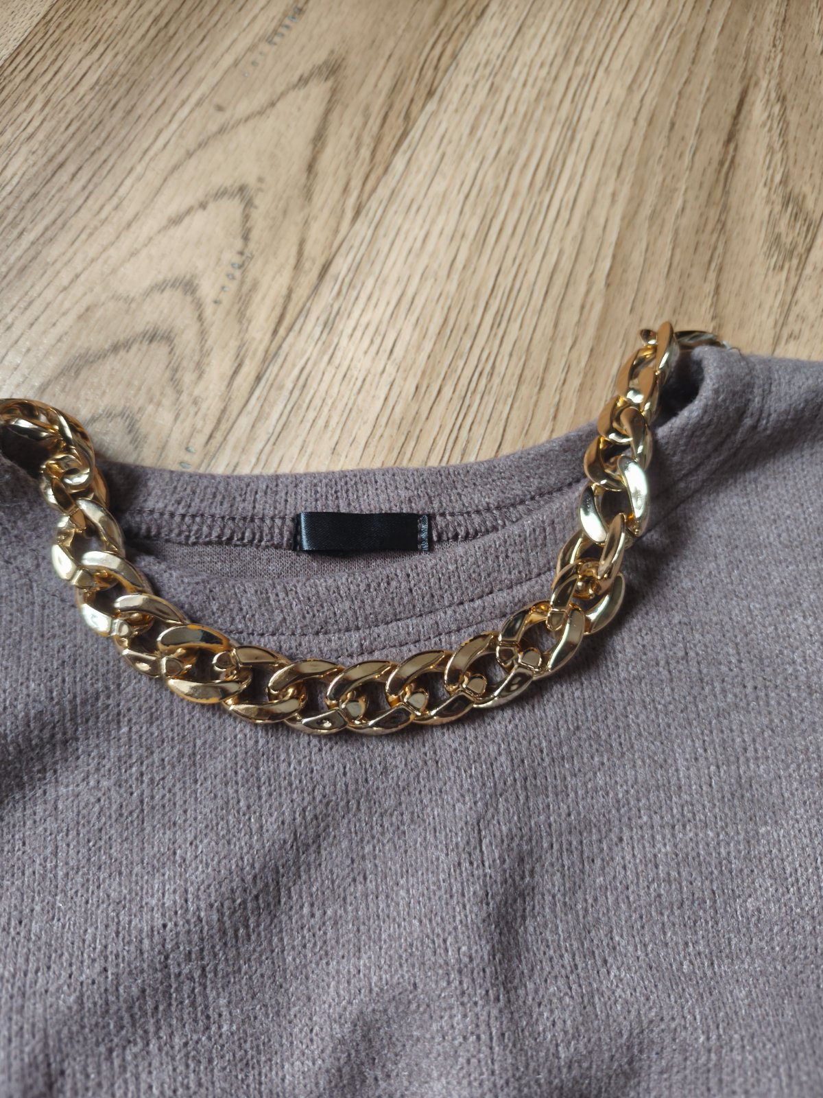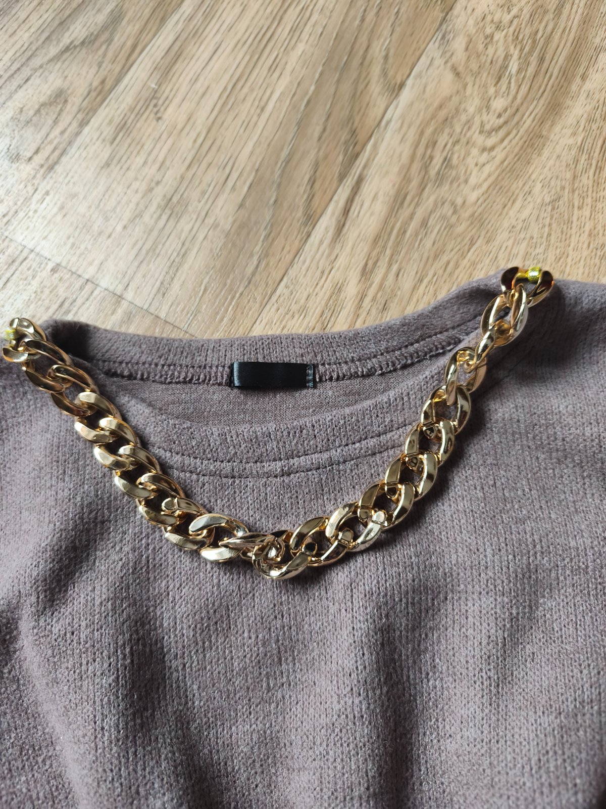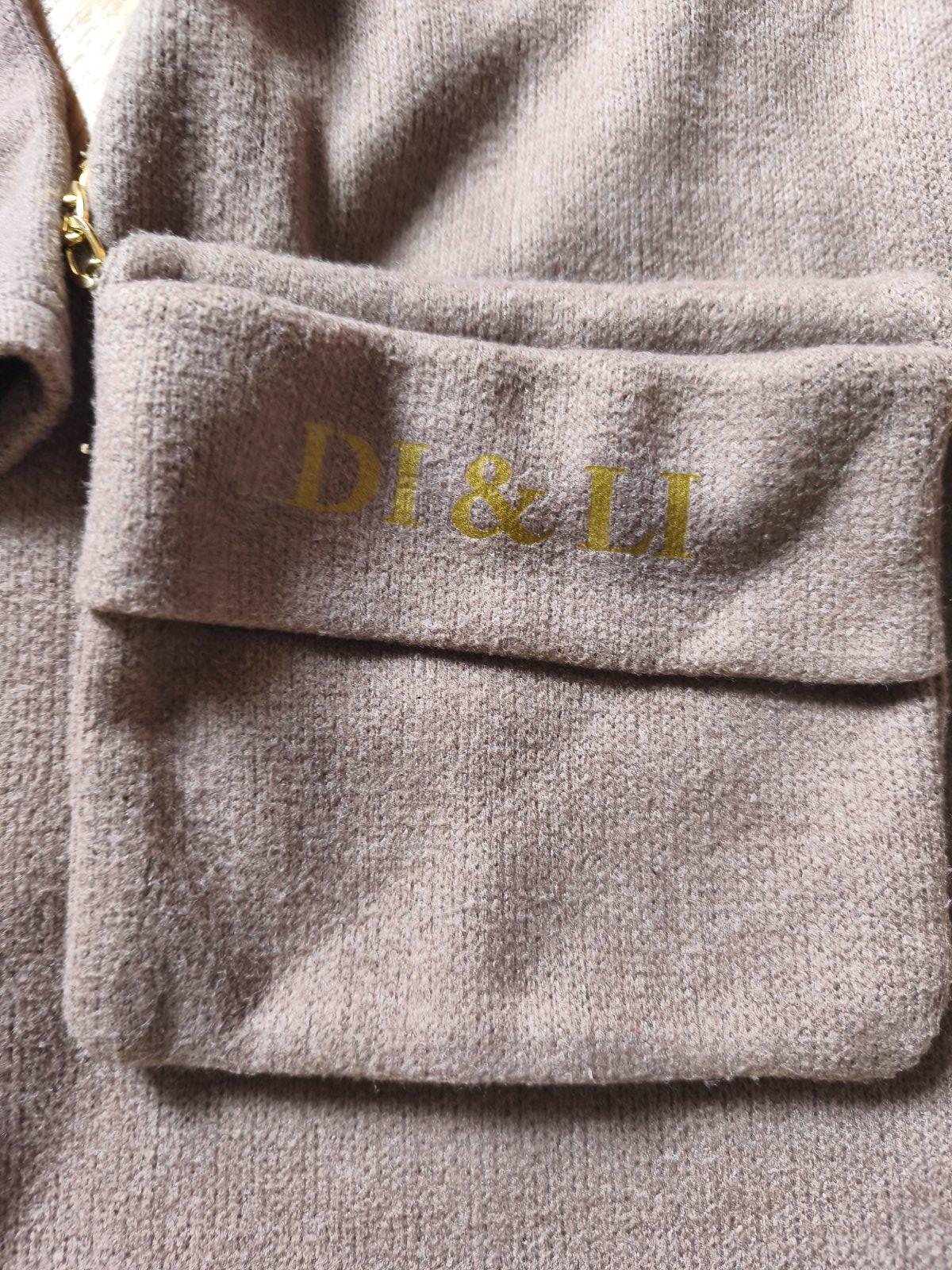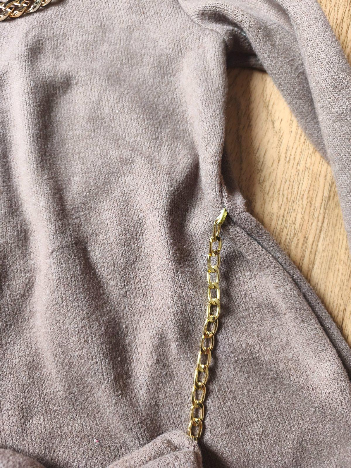 Svetrové šaty s kabelkou vel M, ale je to tak XXS pro velmi drobnou mamku nebo cca 146-158 max (rukáv může být 3/4), měřte. Jsou pružné. Běžné známky praní, žmolík. Barva taková starorůžová nebo spíš starofialová. Řetízek na krku místy odřený.