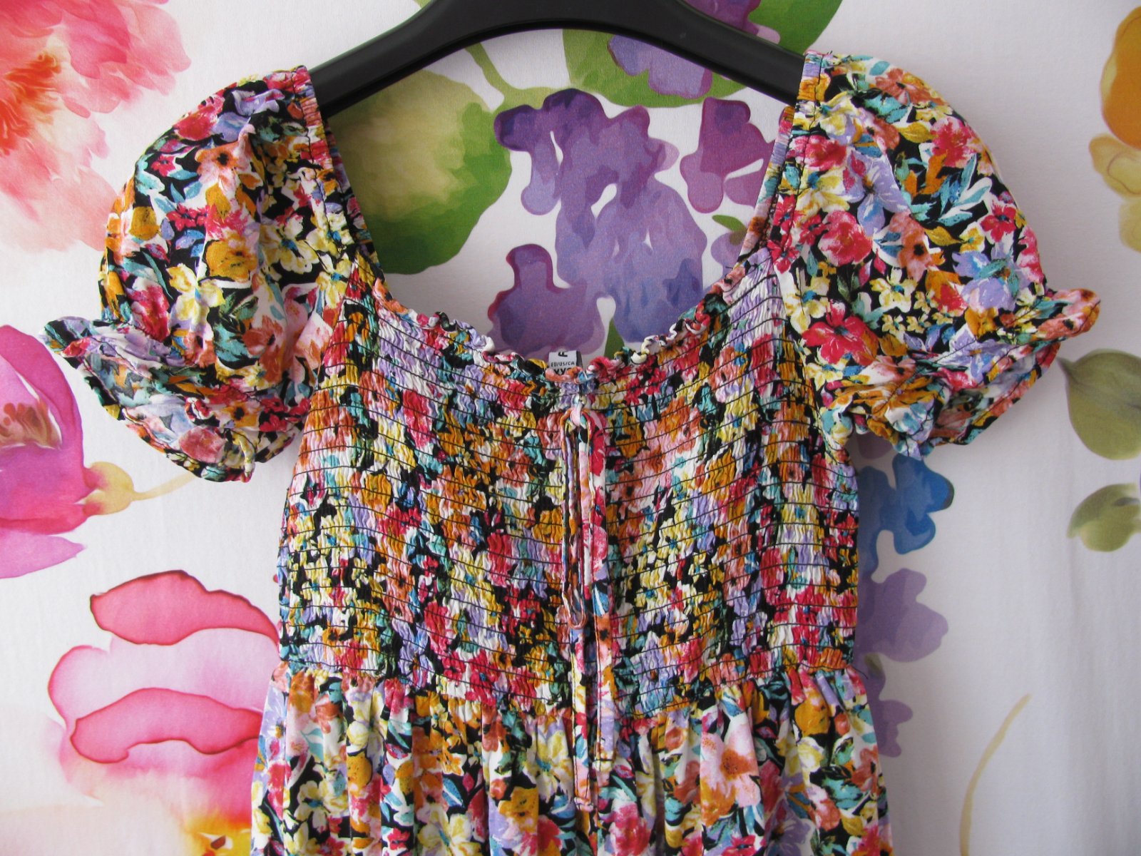 Letní viskozové kraťasové šaty s všitými elastickými ,černými kraťasy , pružné žabkované bolérko, 100% viskoza, 100% polyester. Top stav bez vady.