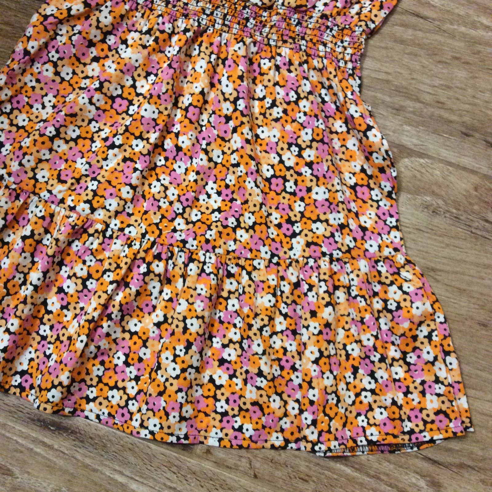 - krásné lehoučké NOVÉ (pouze vyprané) květinkové šaty - v pase pružná guma - vzadu zapínání na ozdobný knoflíček, včetně náhradního