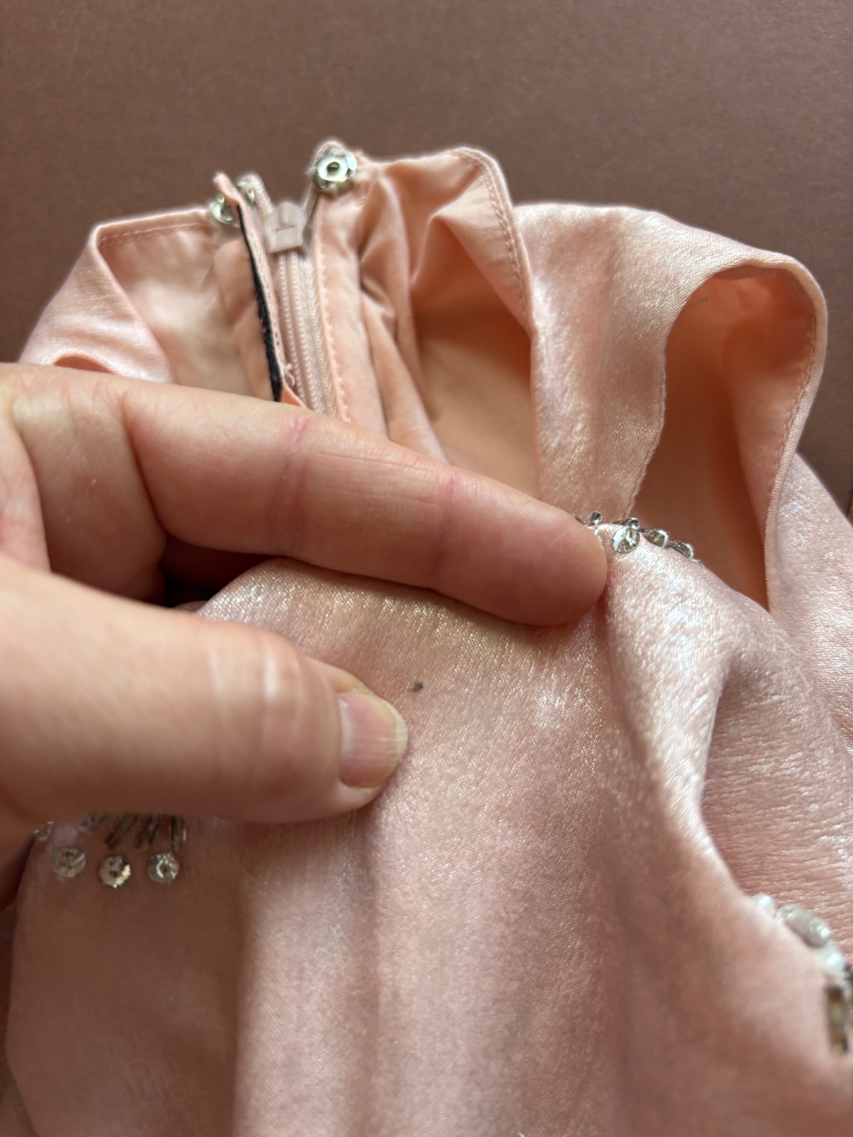 DOBRÝ STAV - žmolíky na lemech, spíš na donošení, na doma, výrznější žmolík....u takovéto stavu oblečeni je vždy zohlednění v ceně .