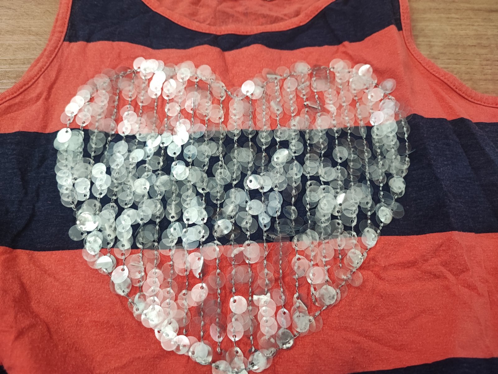 Letní šaty s flitrovym srdíčkem. Zn. Desigual, velikost 9/10 let - rozměry na fotkách.
