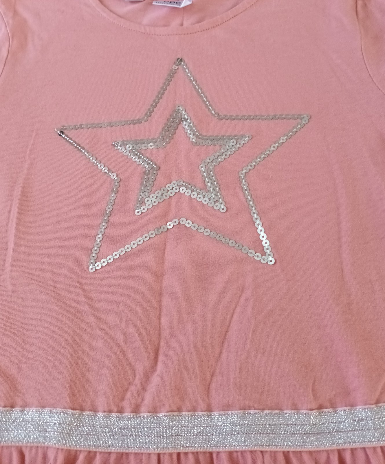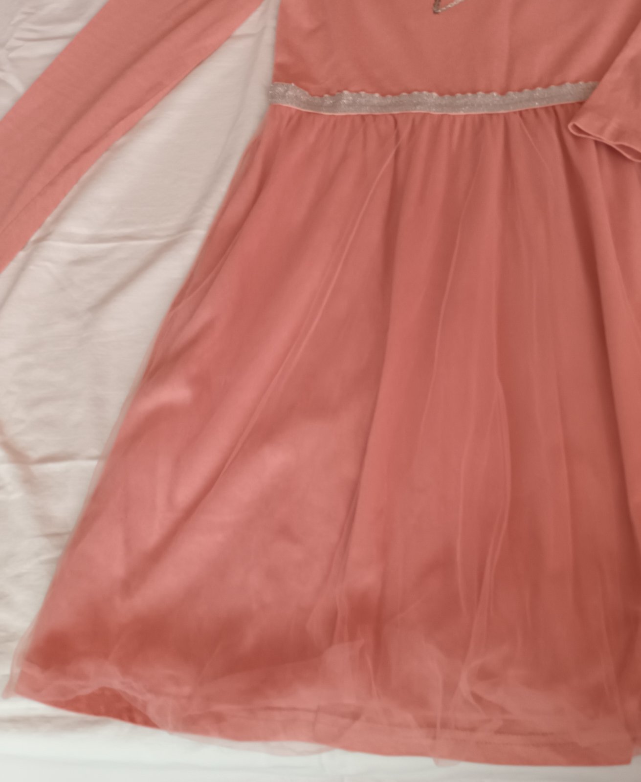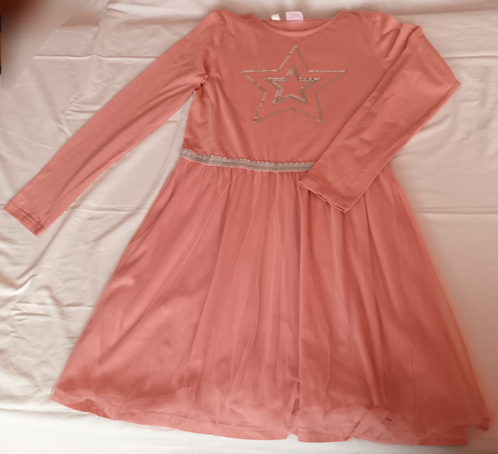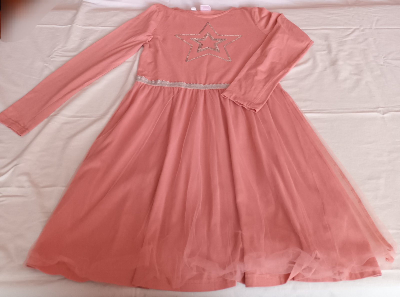 Krásné sváteční žerzejové šaty s tylem a pajetkami starorůžová barva dlouhý rukáv Bonprix , vel. 164/170. Šaty jsou nošené svátečně - bez vad.