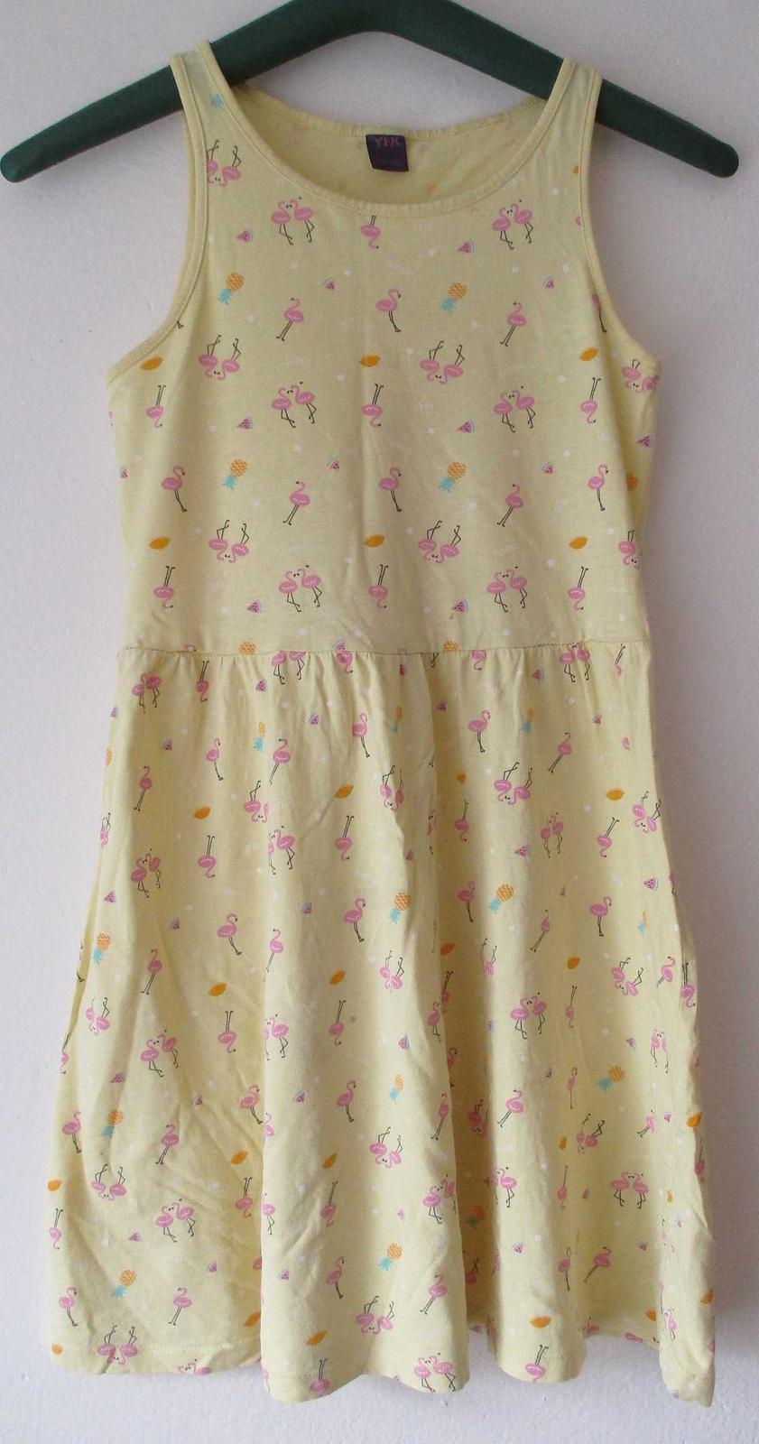 Nabízím dívčí šaty z Kiku, vel. uvedena 158/164, dle nás spíše 152/158. Na některých místech skvrny a povolené švy viz foto. Materiál 100% bavlna. Mezi podpažími 38 cm, pas 36 cm, délka 79 cm. Daruji k jakékoliv objednávce.