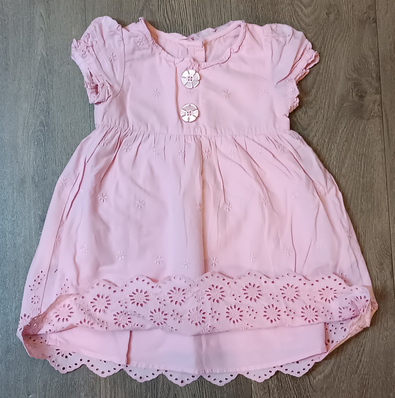 Nabízím dívčí růžové šatičky se spodničkou značka George, vel. 80/86, s motivem kytiček, vzadu zapínání na knoflíčky, lehké, letní, top stav.